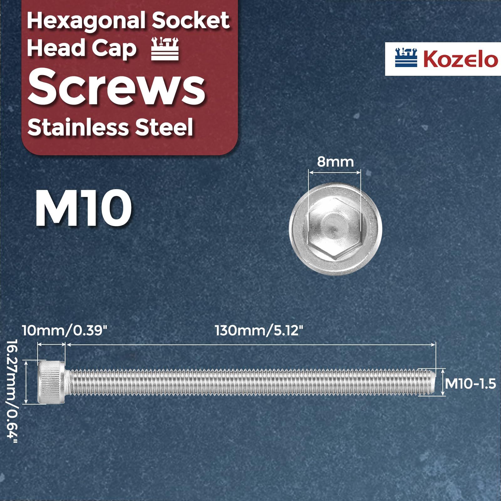 1- パッケージ内容 - 六角ソケットヘッドキャップネジ2個、ネジサイズ: M10-1.5、ネジ長さ: 130mm/5.12インチ、ヘッド直径: 16.27mm/0.64インチ、ヘッド厚さ: 10mm/0.39インチ、六角幅: 8mm。幅広い産業および商業用途に使用できる、多用途で信頼性の高い選択肢です。