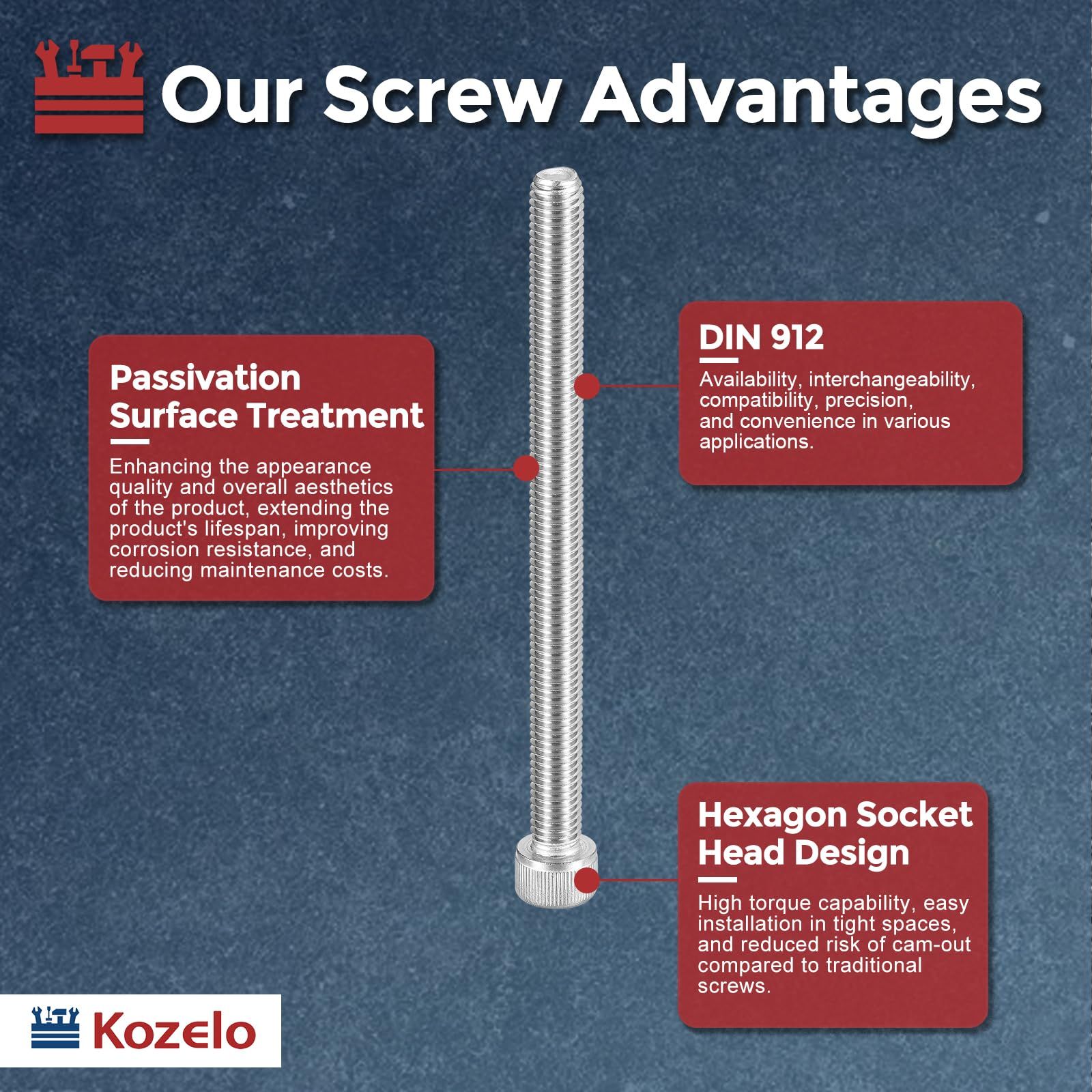 4- 用途 - 機械部品を固定および接続して安定した動作を確保します。これらのネジは、機械、装置、およびツールを組み立て、構造的完全性を維持するために不可欠です。さらに、機械部品の位置を調整したり、装置の精度と機能を維持するためのメンテナンス作業を実行するために使用されます。