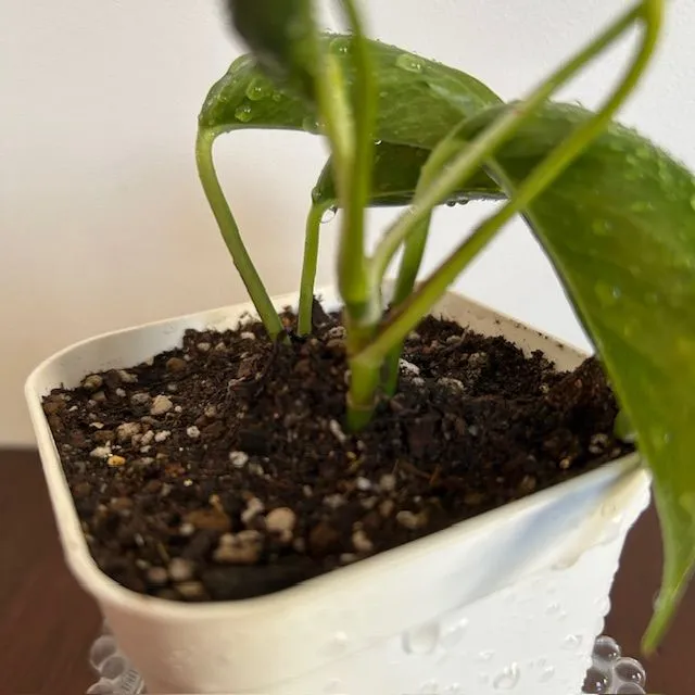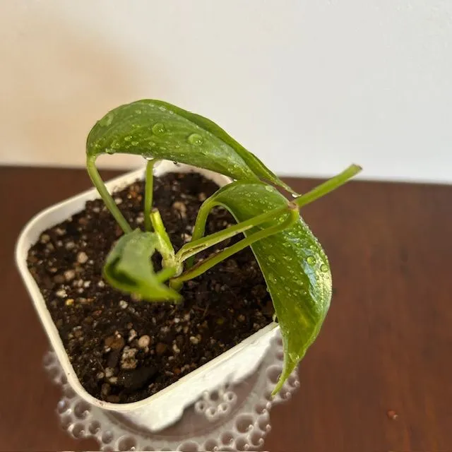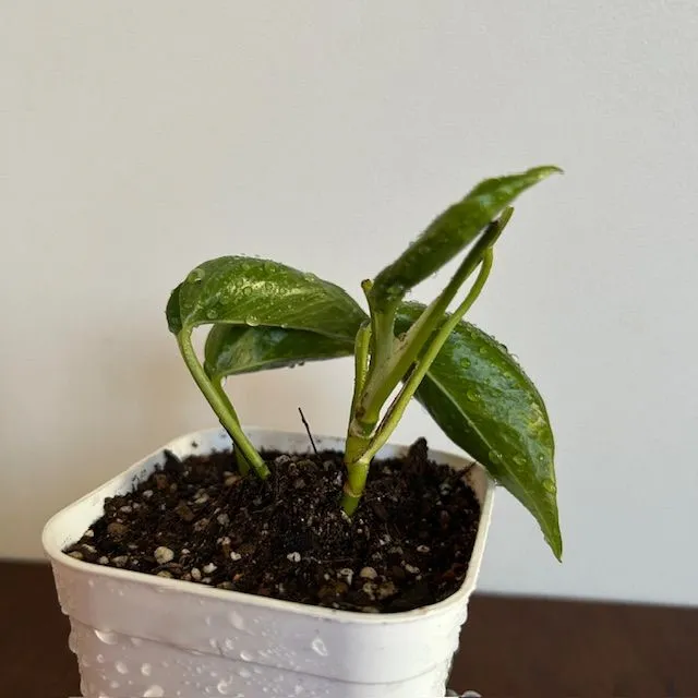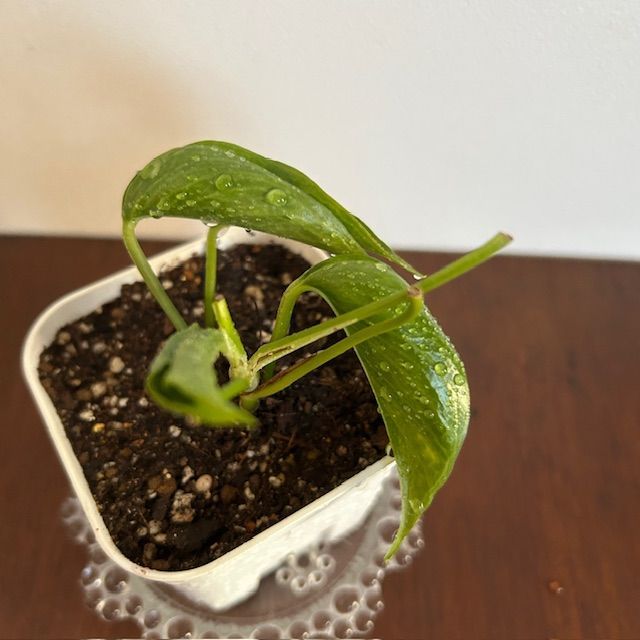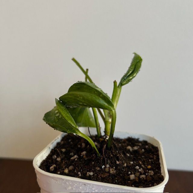 【以下、ご購入前に必ずご確認ください。ご納得いただけない場合、申し訳ございませんがご購入をお控え下さい】 ※複数点ご利用のお客様には、お手数をおかけしますが個々に商品をご購入いただいております。おまとめ対応、割引きは行っておりません ※ 他にもお部屋で楽しめる植物を多数ご用意しております。よろしければショップページもご覧ください ※ポット、容器、土は付きません。 現在は流通量の少ない、希少な品種のポトスです。 「テルノ ラブソング」は、「テルノ シャングリラ」の枝変わりとなります。 斑の入り方がとっても美しく、エレガントさが魅力です。 葉は巻いているのが特徴のポトスです。 生長は遅めです。 また、葉が茶色く変色しやすい等、他のポトスより少し弱い印象があります。 ポットから抜き、少し土がついた状態でのお届けとなります。