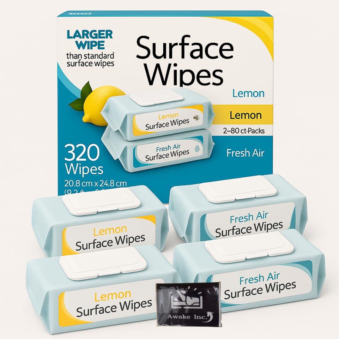 コストコ サーフェスワイプ 住居用 クリーナーシート 掃除シート 除菌 フローリング対応 大容量 フレッシュエアー レモン 80枚 各2パック 合計 4パック 320枚 Awake