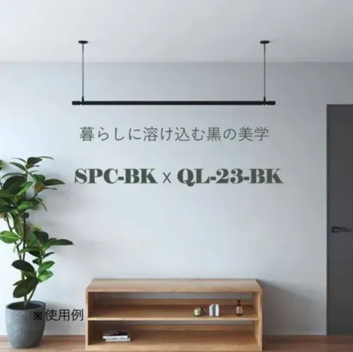 デザイン伸縮物干竿(QL-23-BK)1本+スタイリッシュ型物干(SPC-BK)2本のセット商品です