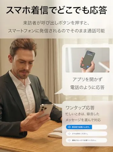 【 ドアホンコール&双方向通話】来訪者がボタンを押すとスマホに着信し、そのまま通話可能。仕事中や不在の際でもワンタップ応答でスムーズに対応できます。