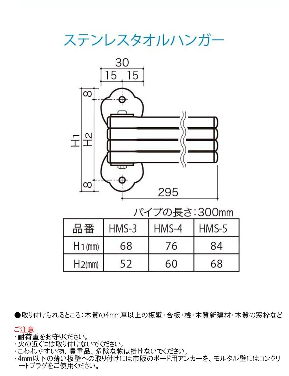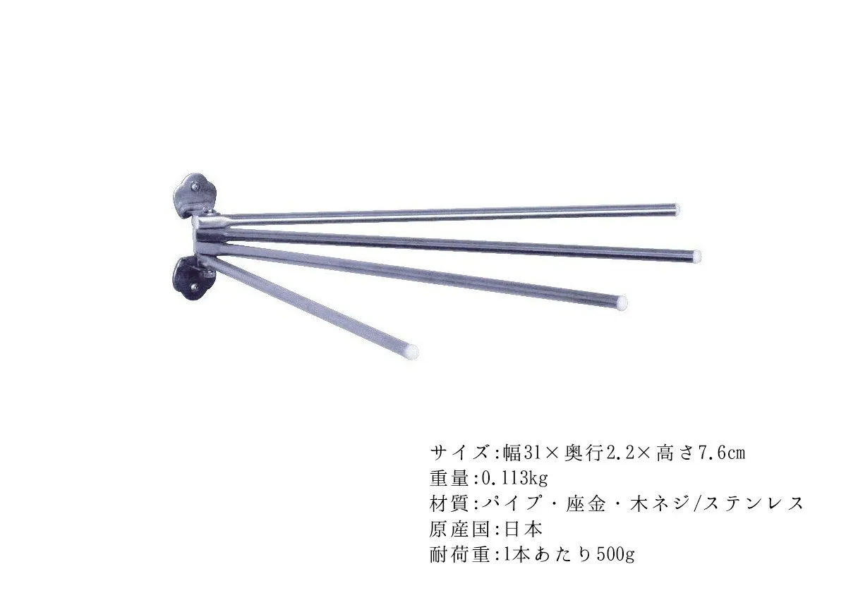 ステンレス タオルハンガー 4本掛け 木ネジ止め HMS-4