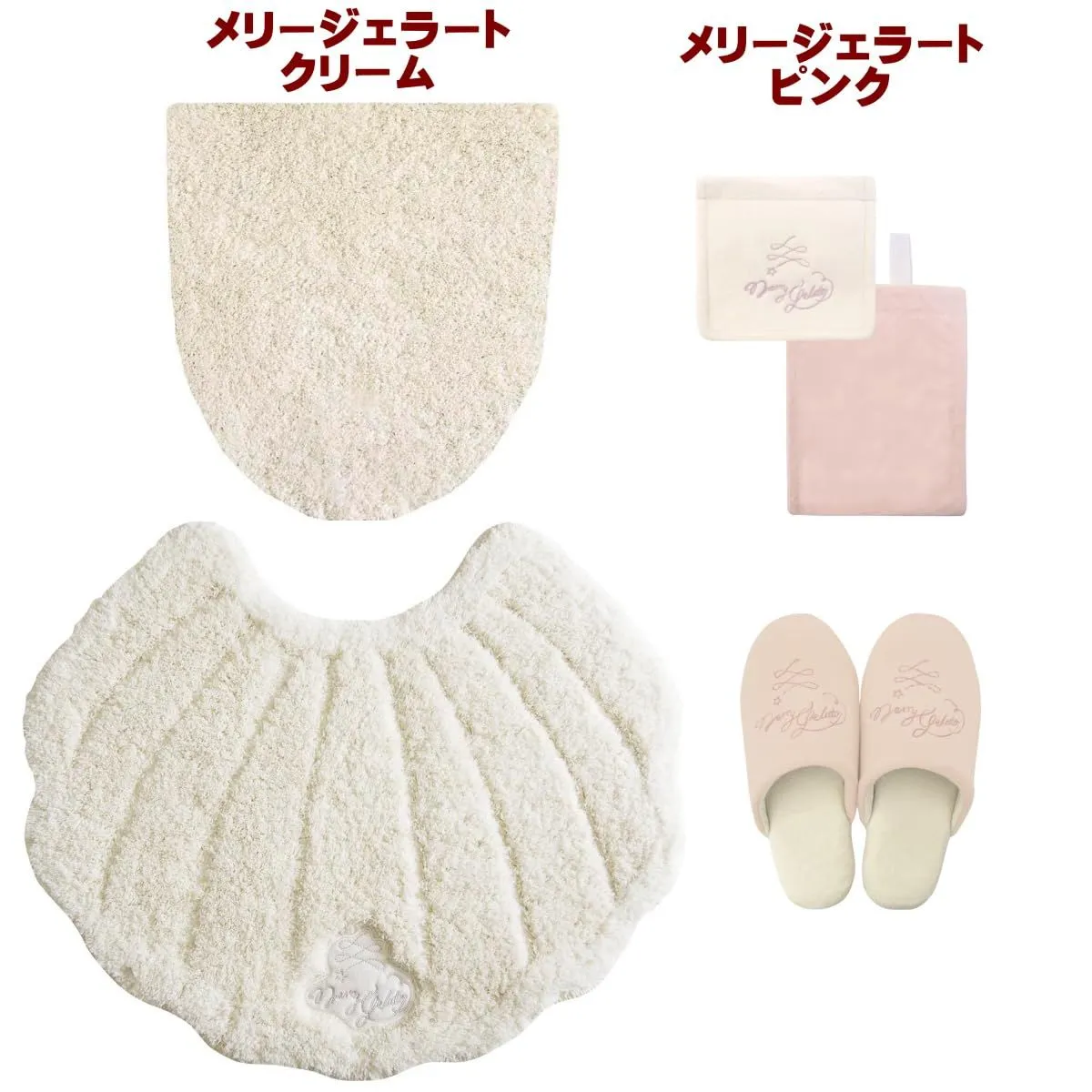 【人気商品】トイレマット 4点 セット ホワイト ピンク 貝殻 マット マルチ型 オカトー メリージェラート 洗浄暖房 普通 兼用 ふたカバー ペーパーホルダーカバー スリッパ マット シェル おしゃれ