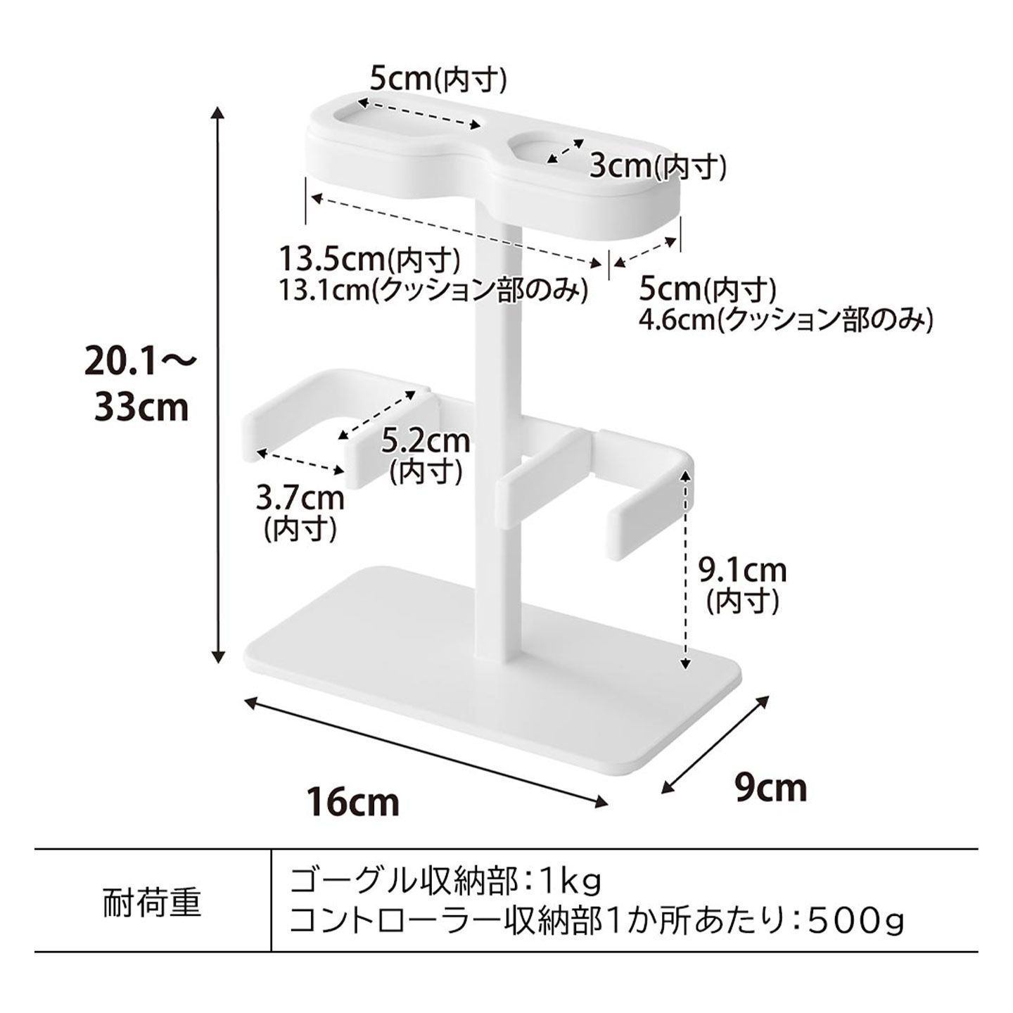 ■サイズ [本体] 約W16×D9×H20.1〜33cm [内寸] ゴーグル収納部:約W13.5×D5cm コントローラー収納部1か所あたり:約W3.7×D5.2×H9.1cm