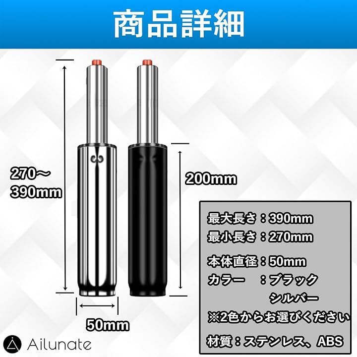 Ailunate ガスシリンダー 椅子 交換用 ゲーミングチェア OAチェア オフィスチェア 一般型 汎用タイプ (ブラック, 39cm)