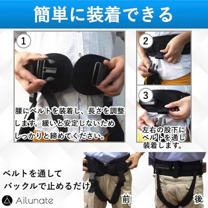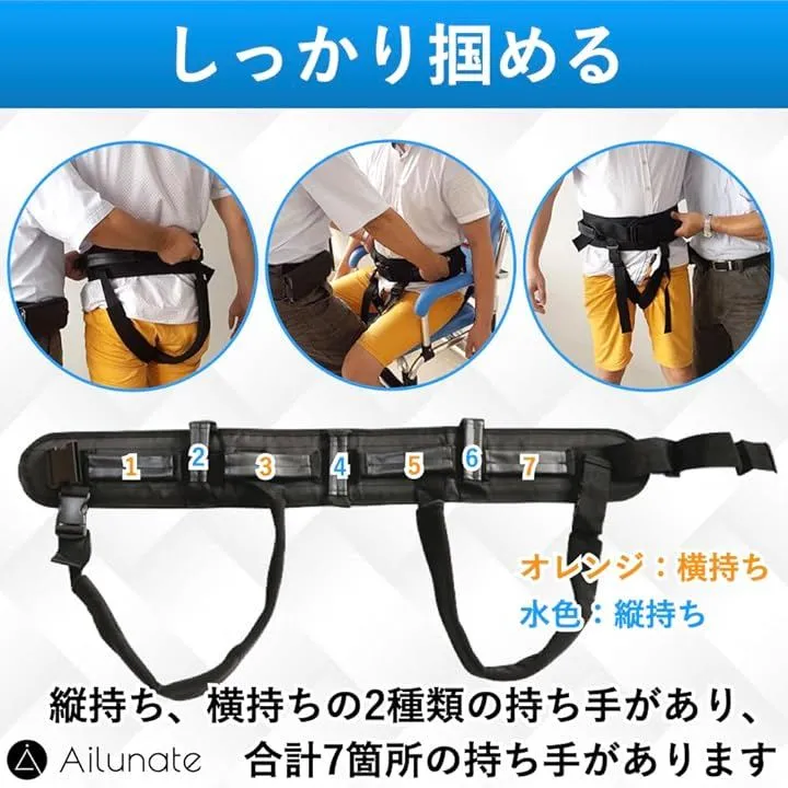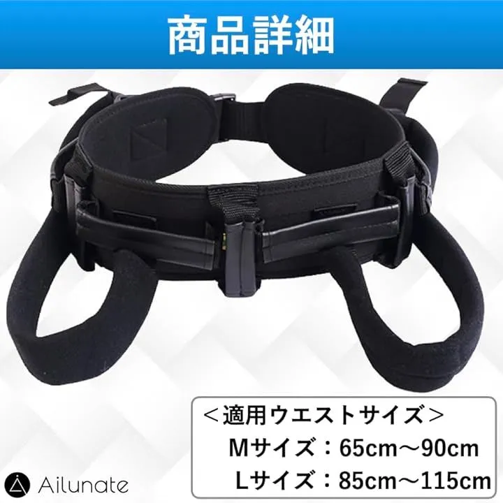 Ailunate 介護ベルト 立ち上がり補助 介助ベルト 介護用品 歩行サポート 移乗 移動 ハーネス リハビリ 車椅子車いす (Lサイズ)
