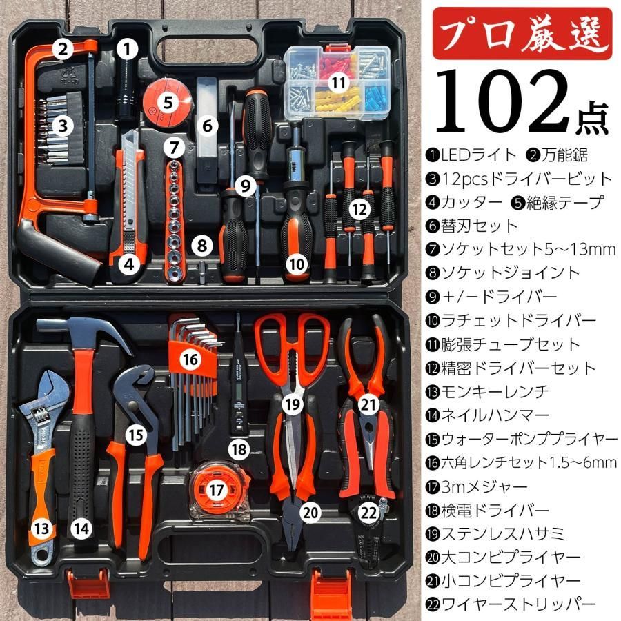 #4 万能工具セット 102点 自動車 車 自転車 家庭用 家具 組立 DIY 修理 メンテナンス 車 バイク ペンチ ハンマー ドライバー レンチ 工具セット ※一部地域離島別途配送料有