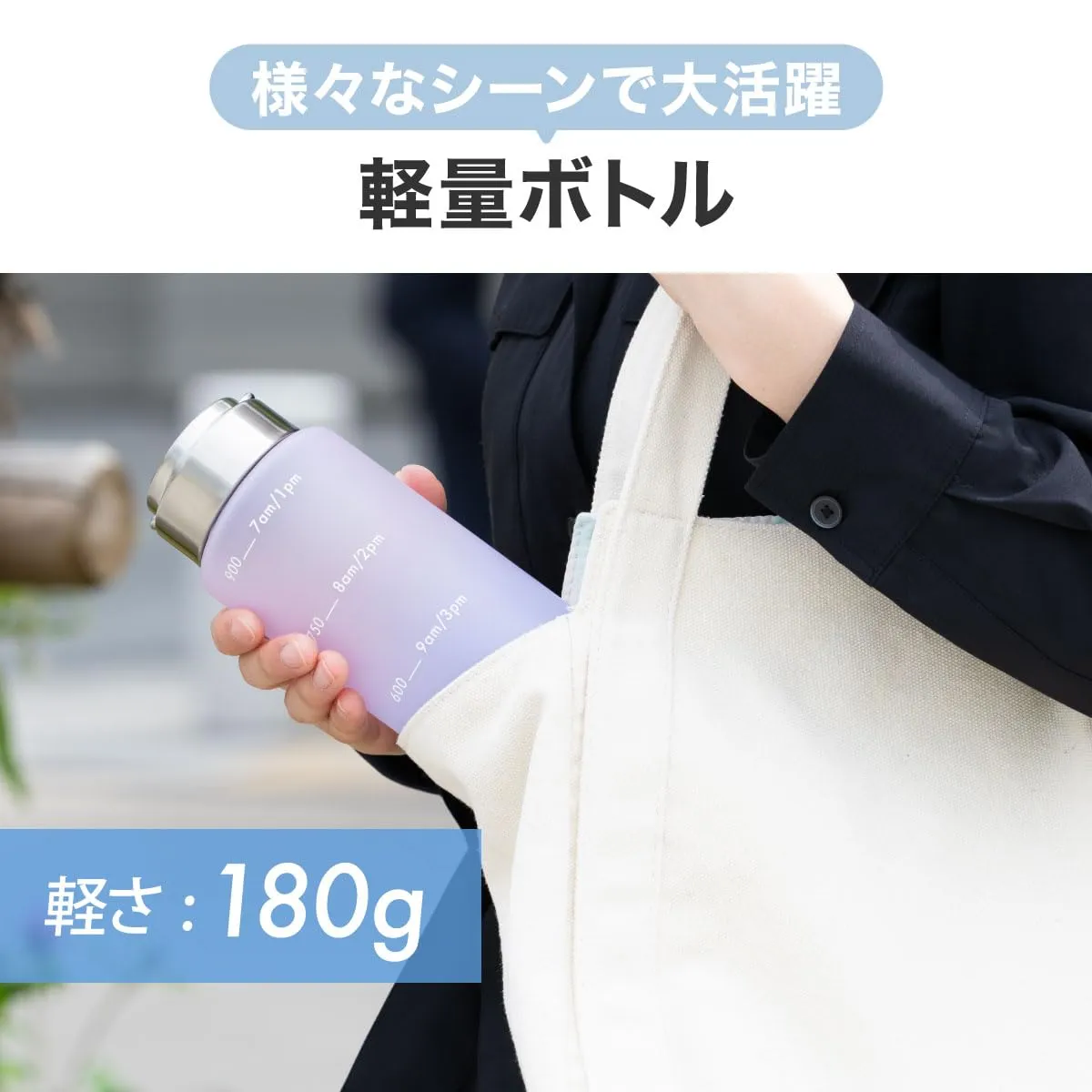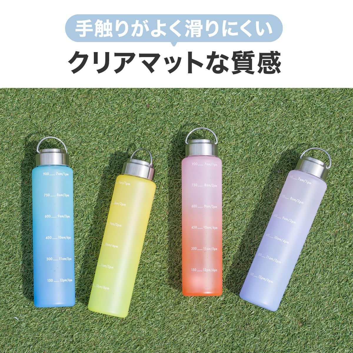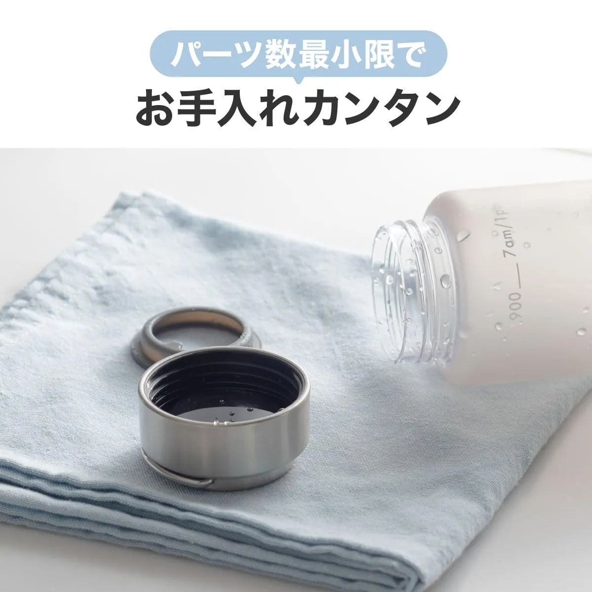 毎日の水分補給をサポート タイムマーカー付きで飲んだ量がわかりやすい常温ボトルです ・ 本体にタイムマーカー付きで1時間ごとの水分摂取量がわかりやすい ・ 丈夫なステンレス製ハンドル付きで持ち運びに便利 ・ パーツが最小限でお手入れ簡単 ・ ブラシを入れて洗いやすい広口の口径48mm ・ たっぷり飲める大容量(通常使用容量は900mLです)