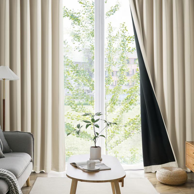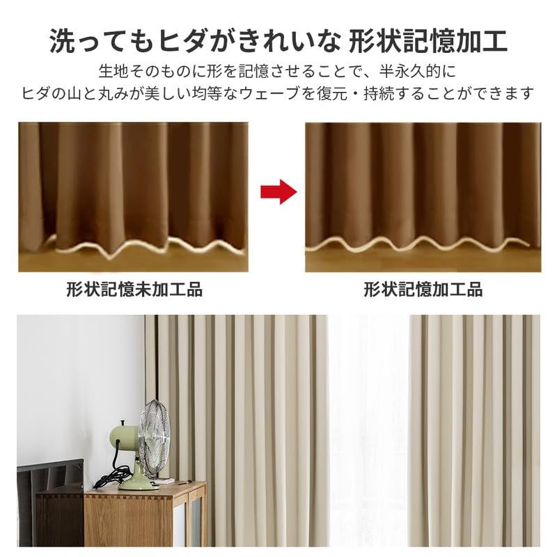 AIFY カーテン 2枚セット 1級遮光 99.9%以上遮光 高い機能性 高密度な生地 黒裏地タイプ 小窓 ドレープカーテン UVカット 形態記憶加工済み 断熱 節電対策 昼夜目隠し 保温 おしゃれ 洗える 洗濯機対応 (カーテン2枚) 幅100cm×丈135cm ベージュ