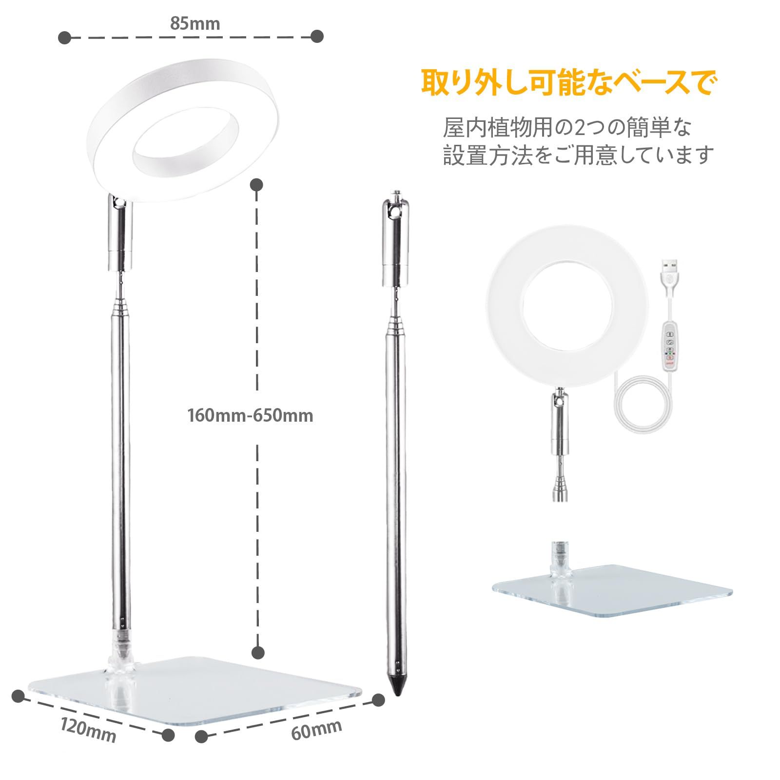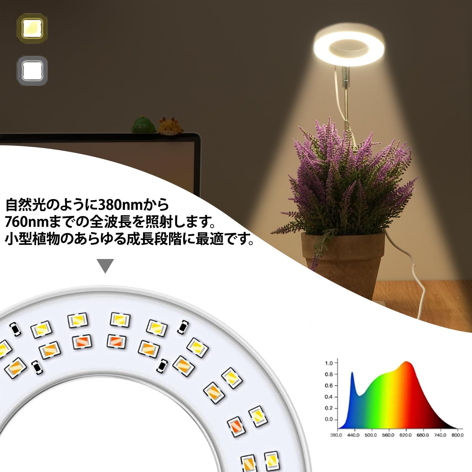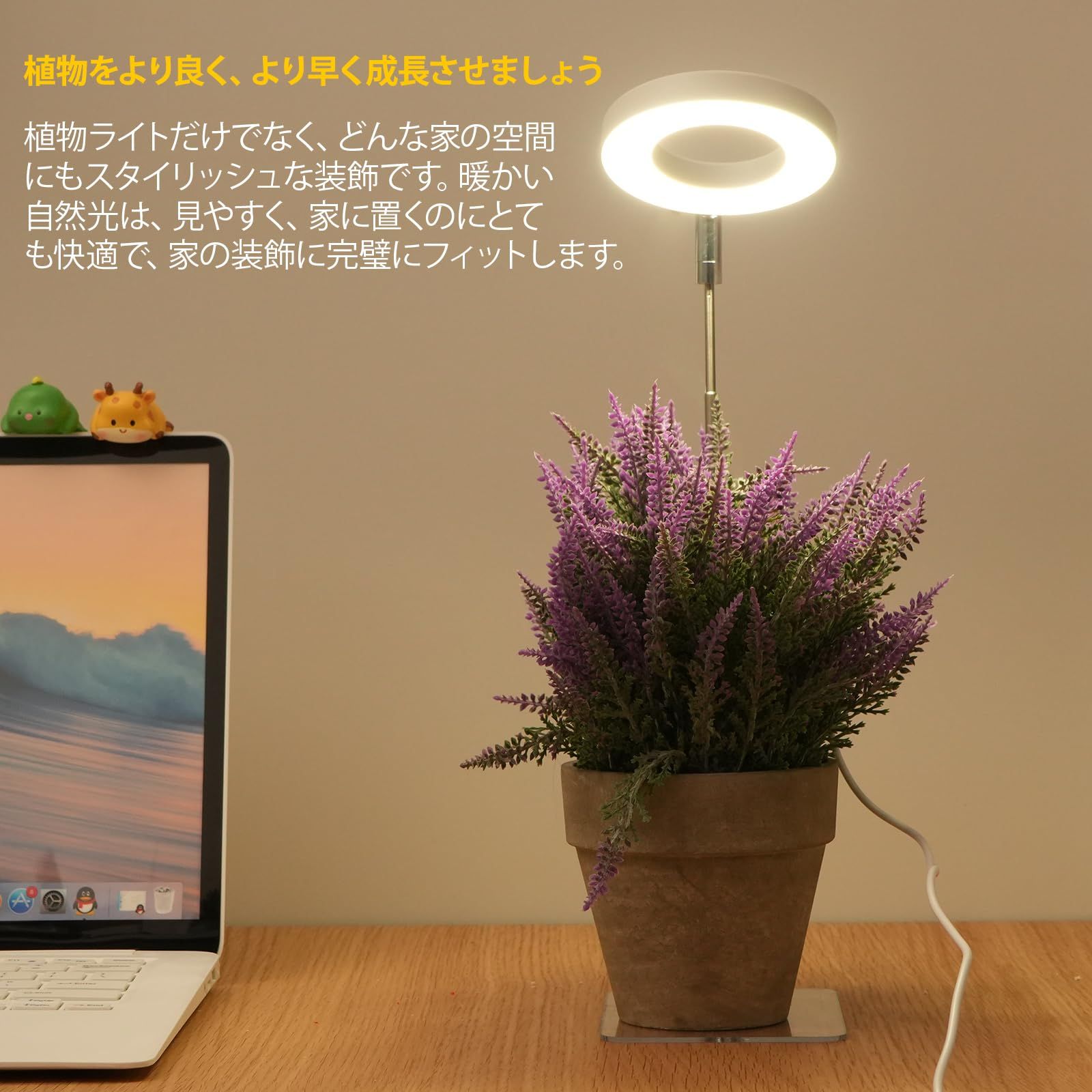 植物育成ライト LED 室内栽培ライト 調光4段階 定時機能(4H / 8H / 12H) 高さ調節可能 省エネ 太陽光模擬 室内栽培用 USB給電 (電球色, 白)