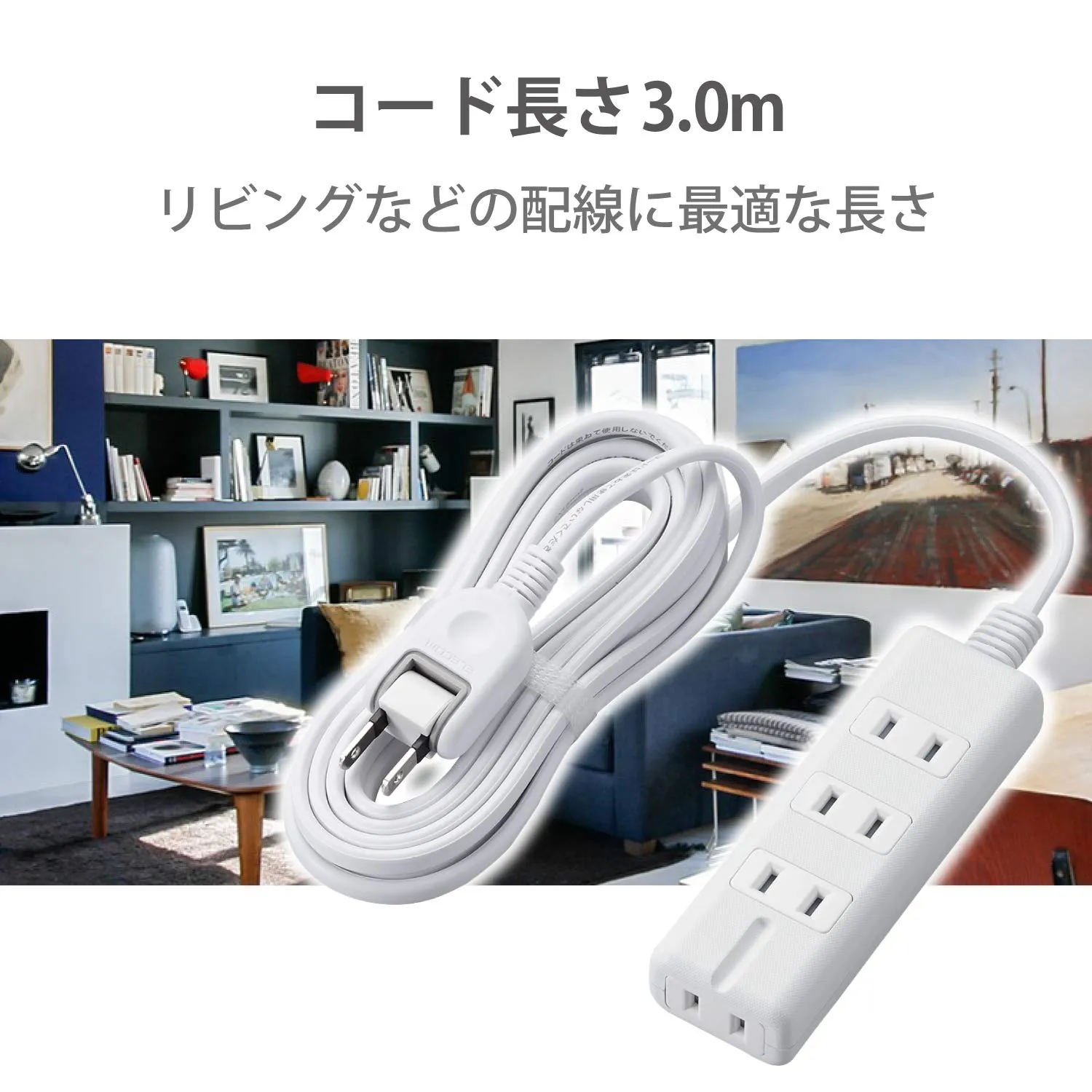 エレコム 電源タップ マグネット 3m 4個口(内3ピン1) ホワイト T-KM01-2430WH