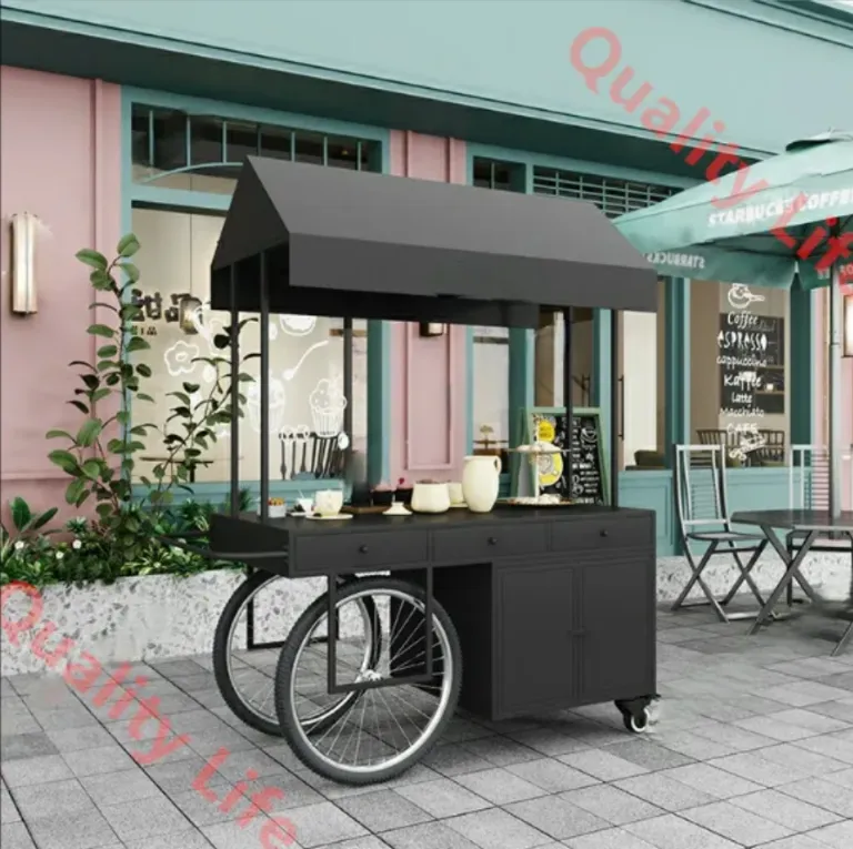洗練された北欧風のデザインが特徴的なこのアイアン花車は、展示、販売、プロモーションイベントなど、様々なシーンで活躍する多機能な移動式販売車です。シンプルでありながら高級感のある外観は、どんな空間にも調和し、注目を集めます。