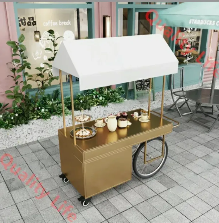 北欧風アイアン花車、屋台車、ショッピングモールのプロモーション用、引き出し付きキャビネット、移動式販売車、アウトドア展示販売車(140CM)