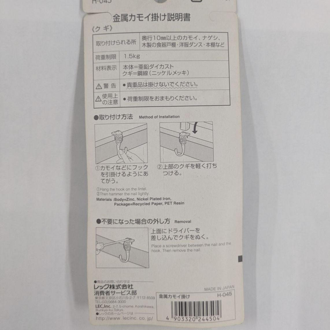 レック 金属カモイ掛け 昭和 レトロ 3つセット(6個)新品、未使用