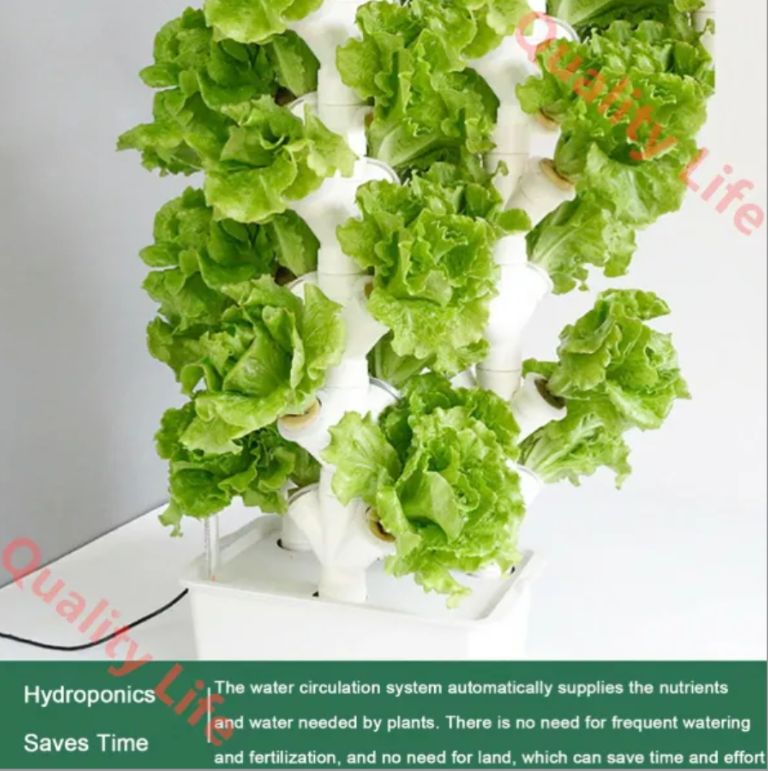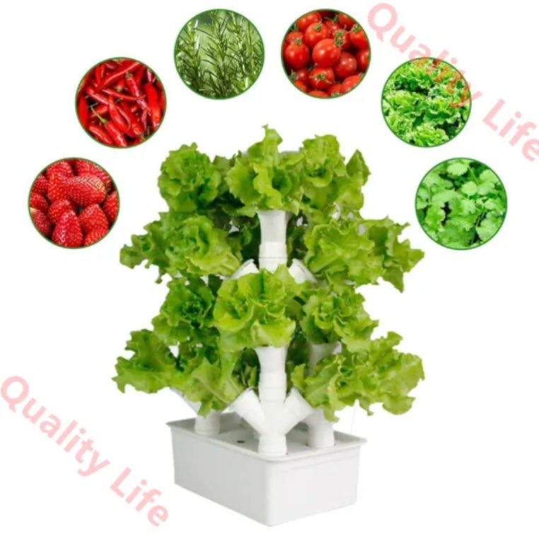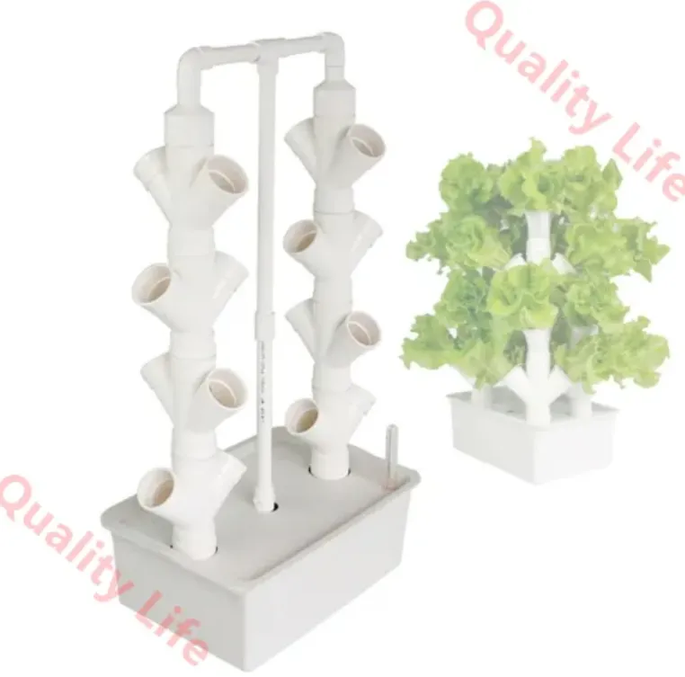 柱型無土壌水耕栽培システム、水耕栽培タワー、家庭菜園、学校用栽培システム