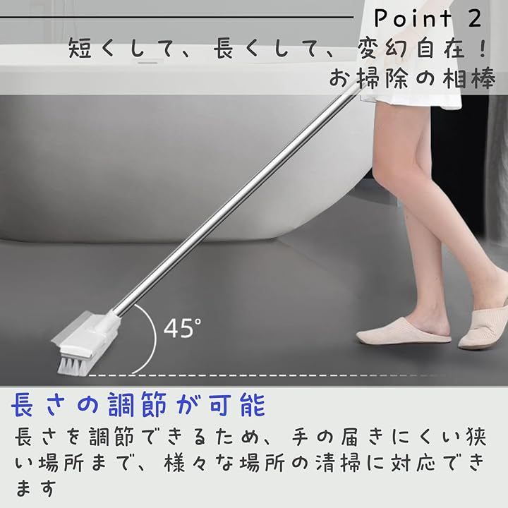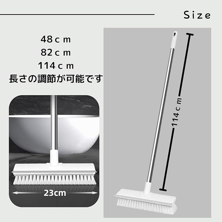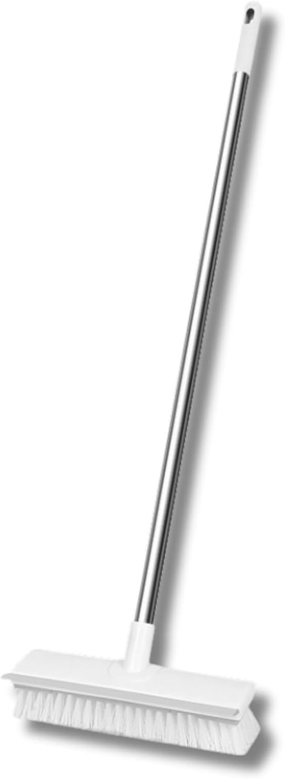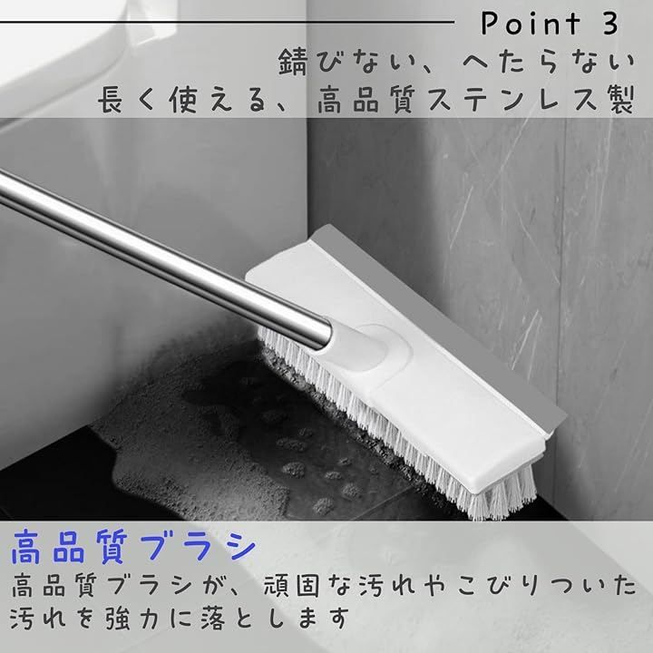 All Trust Trusut デッキブラシ 2in1 水切りワイパー ベランダ 掃除用ブラシ タイルブラシ (シルバー, 114cm)