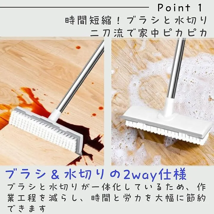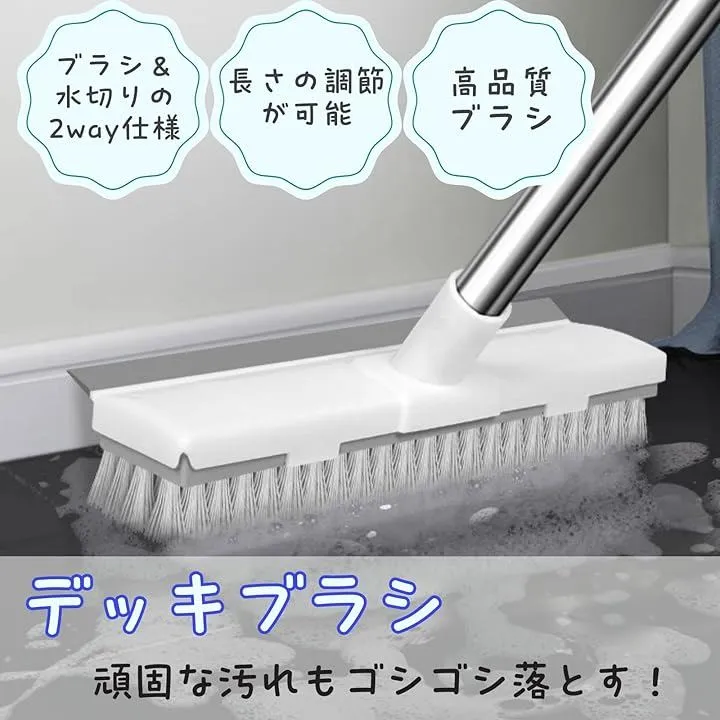 「ブラシ&水切りの2way仕様」デッキブラシと水切りが一体化した掃除用品です。