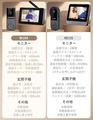 【赤外線暗視・IP65防水】ドアベルが鳴ったとき、来訪者の映像をモニター付きインターホン親機に自動表示します。暗い時は玄関子機の呼出ボタンが押されると、赤外線LEDが自動で点灯し、訪問者を正面から照らすことで、夜間でも約50cm先まで訪問者の顔がはっきり見えます。約95mm54mmの4.3型のワイドカラー大型液晶ディスプレイと120度超広角レンズが搭載されており、撮影範囲が広く、来訪者はもちろん、複数人の来客でも周囲の状況もしっかりと視認できます。ドアカメラ本体もコンパクトなので、部屋間も手軽に持ち運べます。