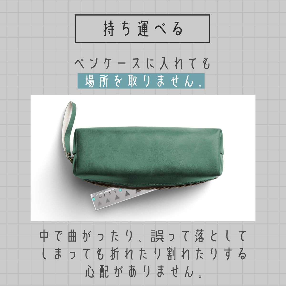 【持ち運びやすい曲がる定規】 ペンケースに入れても場所を取らず、曲がる定規は折れにくいのが特徴です。コンパクトで丈夫なので、どこへでも曲がる定規を気軽に持ち運べます。
