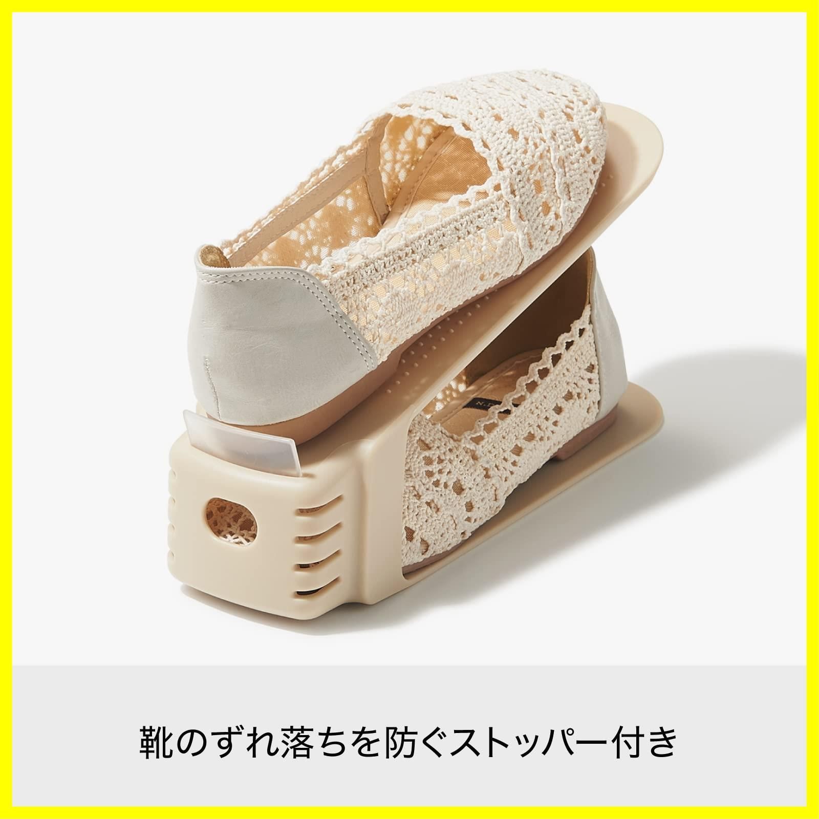 【在庫処分】ライクイット like-it) 靴 収納 省スペース 収納量2倍くつホルダー ワイド 6個入 ベージュ 約幅10x奥26x高13.5cm 日本製 スニーカー収納 男女兼用