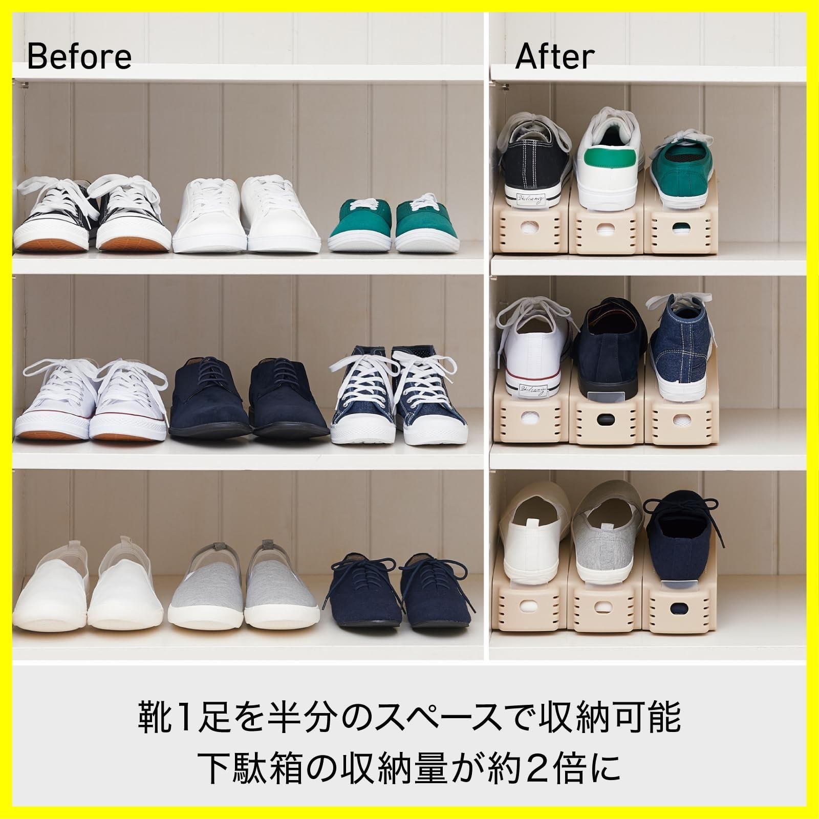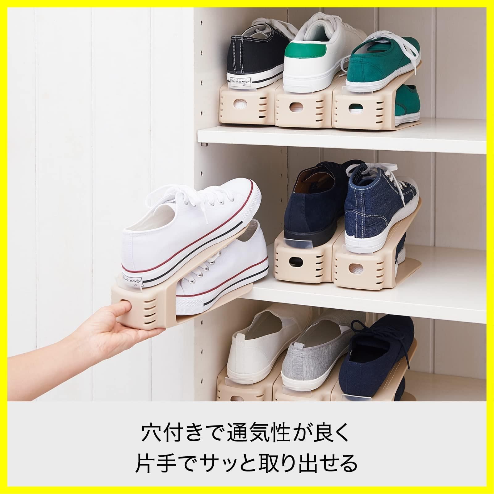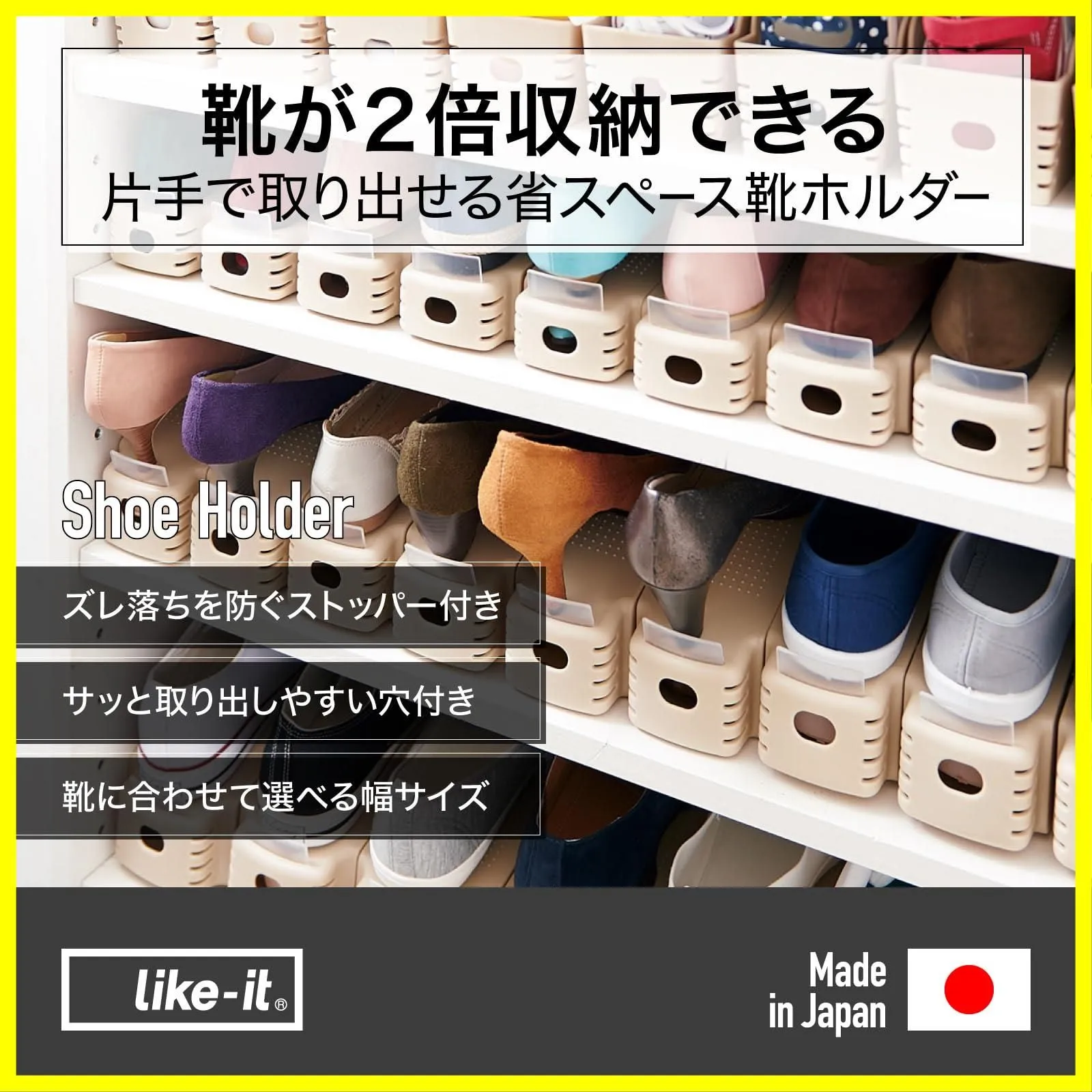 ライクイット like-it) 靴 収納 省スペース 収納量2倍くつホルダー ワイド 6個入 ベージュ 約幅10x奥26x高13.5cm 日本製 スニーカー収納 男女兼用