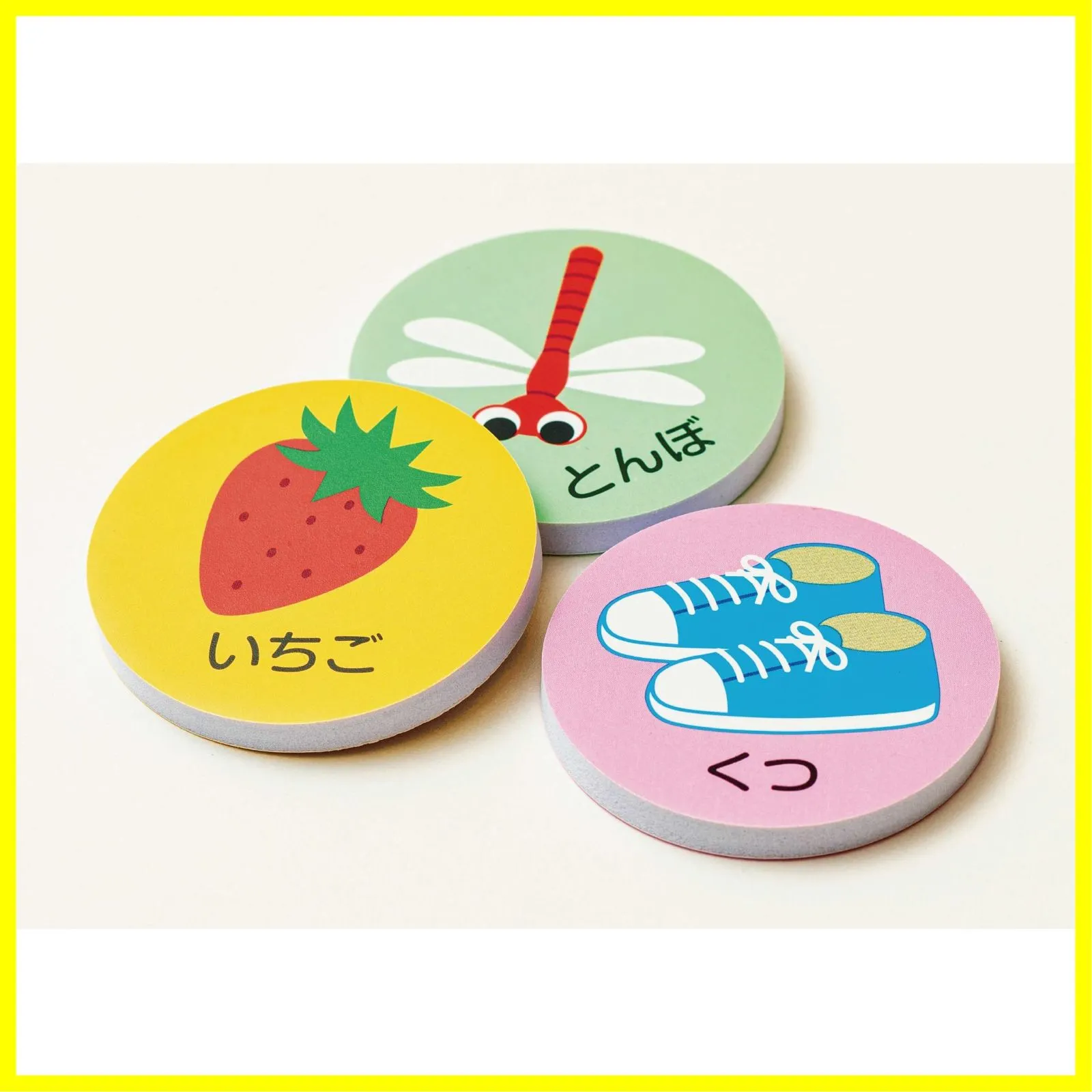 水に濡らすとお風呂の壁などに貼ることができるピースのセットです。ピースの表面にはイラストと文字、裏面には文字が記載されていて、お風呂でのいろいろな遊びの中でひらがなことばを覚えていくことができる商品です。ピースは幼児にとって親しみのあることばが50種類あります。