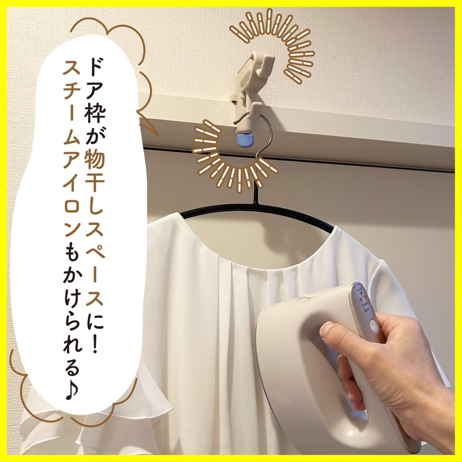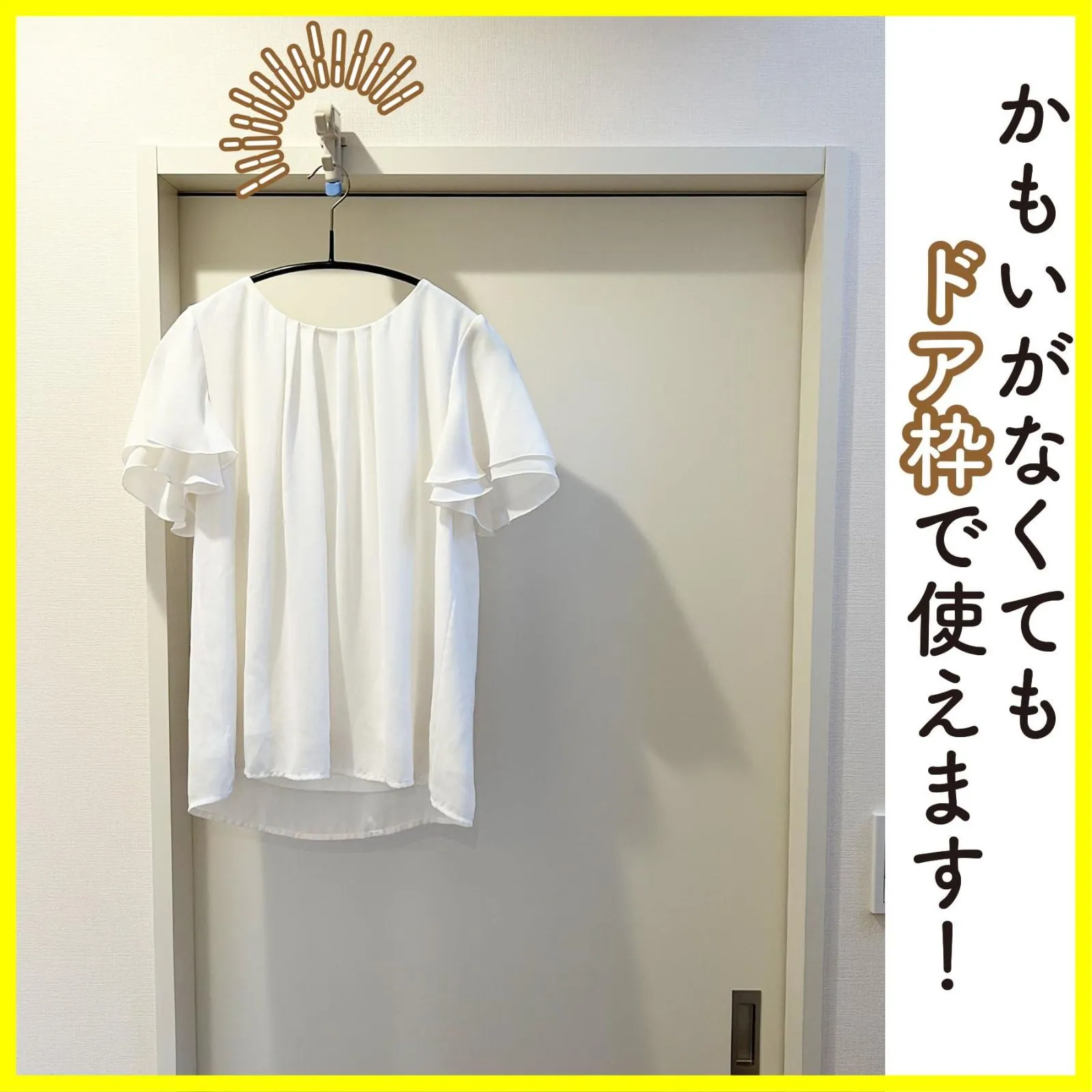 カモイに傷をつけずにハンガー掛けができます。