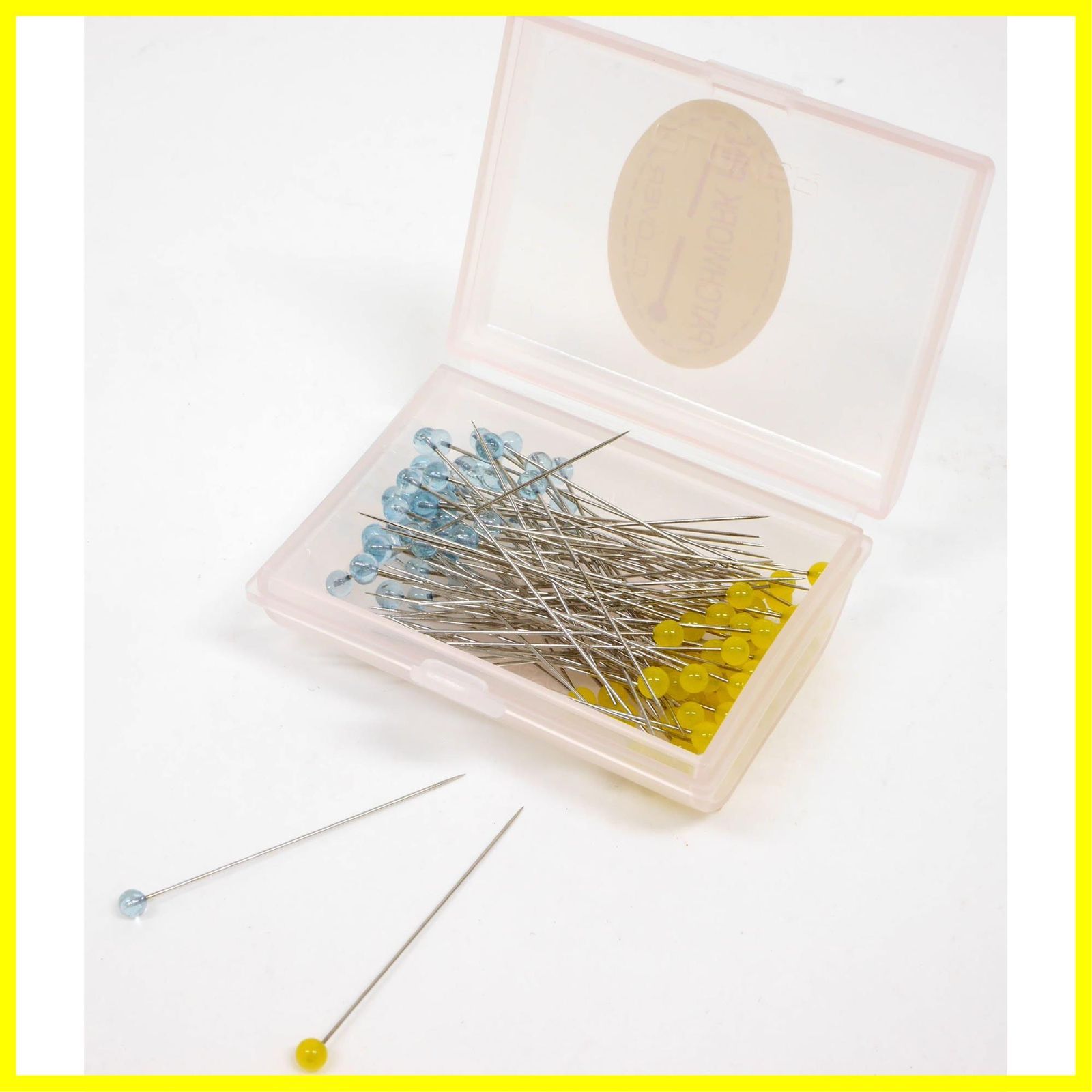 シャープな針先で布通りが抜群。頭は、アイロンの熱にも強いガラス製。より)