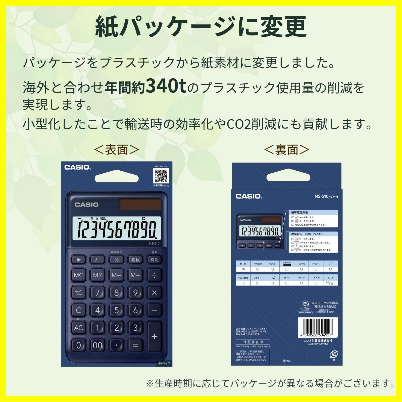 【新着商品】10桁 ネイビー 大判手帳タイプ スタイリッシュ電卓 NS-S10-NY-N カシオ