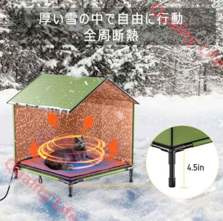 【屋外猫用加熱猫ハウス】屋外加熱猫ハウスは野良猫に究極の快適さを提供します。マットはサーモスタットで制御され、快適な温度を維持し、屋内外の猫に安全で快適なシェルターを提供します。 ?