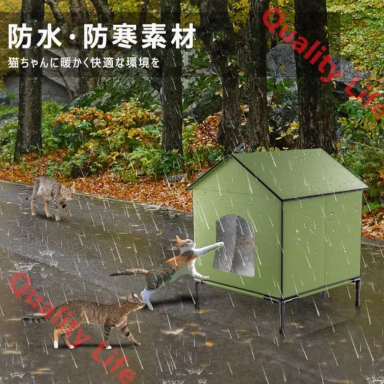 【屋外耐候性キャットハウス】暖房付き屋外キャットハウスは耐候性があり、ベースが高く、防湿性があるため、雨の日でも猫は乾燥した快適な環境を保つことができます。また、アップグレードと補強のためのフロアプラグも提供しており、断熱キャットハウスを強くて安定させ、風で吹き飛ばされにくいようにします。 ?