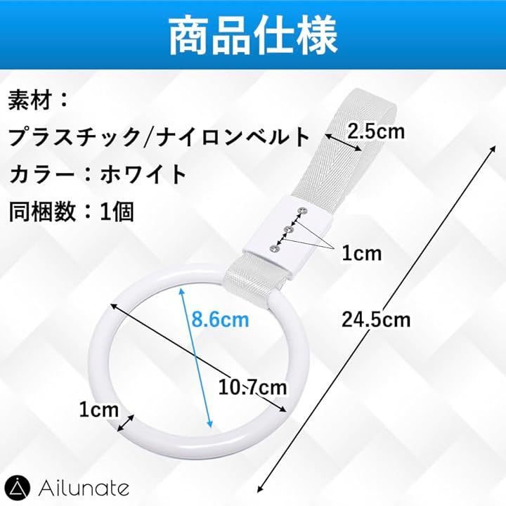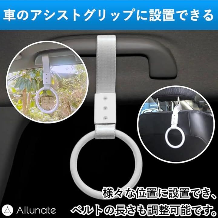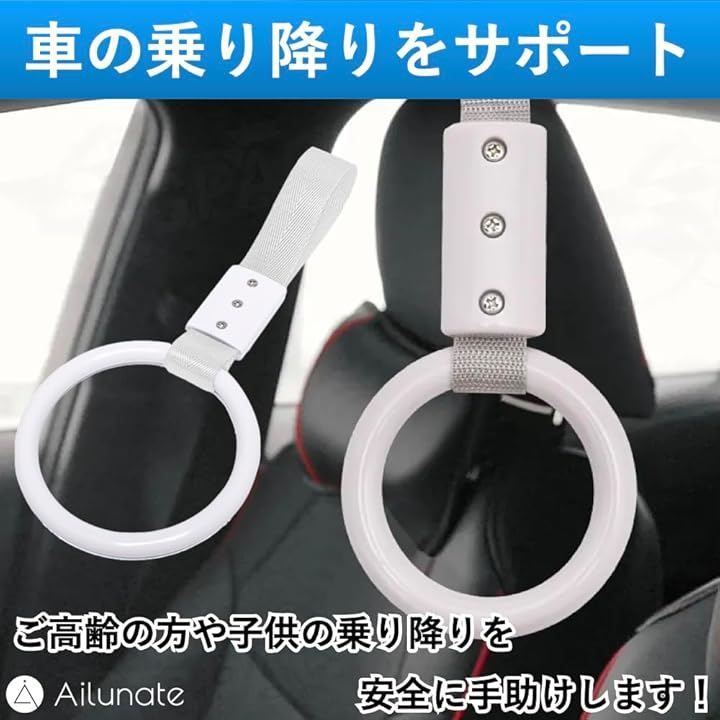 Ailunate 吊り革 つり革 車 介護 吊り輪 持ち手 子供 子ども 手すり グリップ 立ち上がり補助 乗り降り 乗降 サポート (ホワイト, 1個)