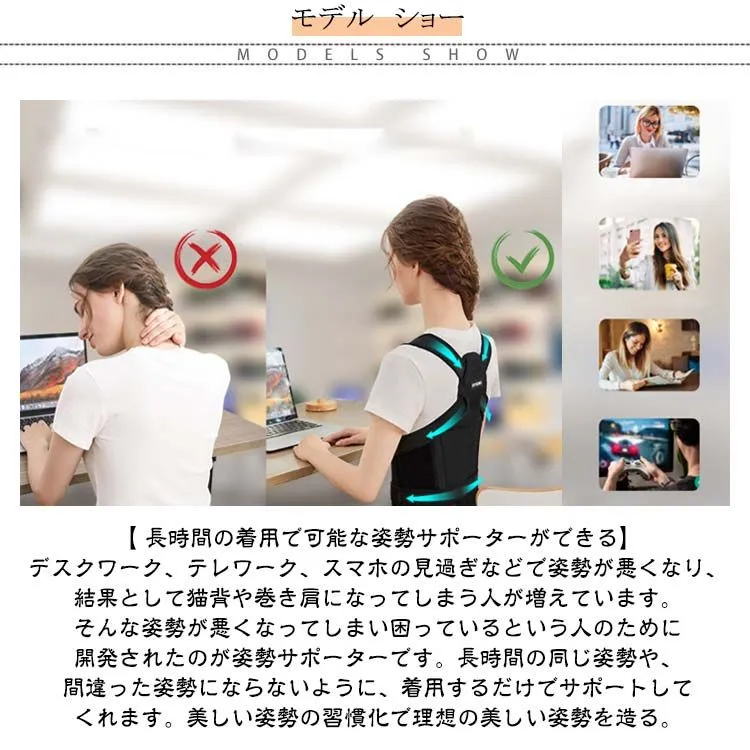 【 長時間の着用で可能な姿勢サポーターができる】デスクワーク、テレワーク、スマホの見過ぎなどで姿勢が悪くなり、結果として猫背や巻き肩になってしまう人が増えています。そんな姿勢が悪くなってしまい困っているという人のために開発されたのが姿勢サポーターです。長時間の同じ姿勢や、間違った姿勢にならないように、着用するだけでサポートしてくれます。美しい姿勢の習慣化で理想の美しい姿勢を造る。 ・
