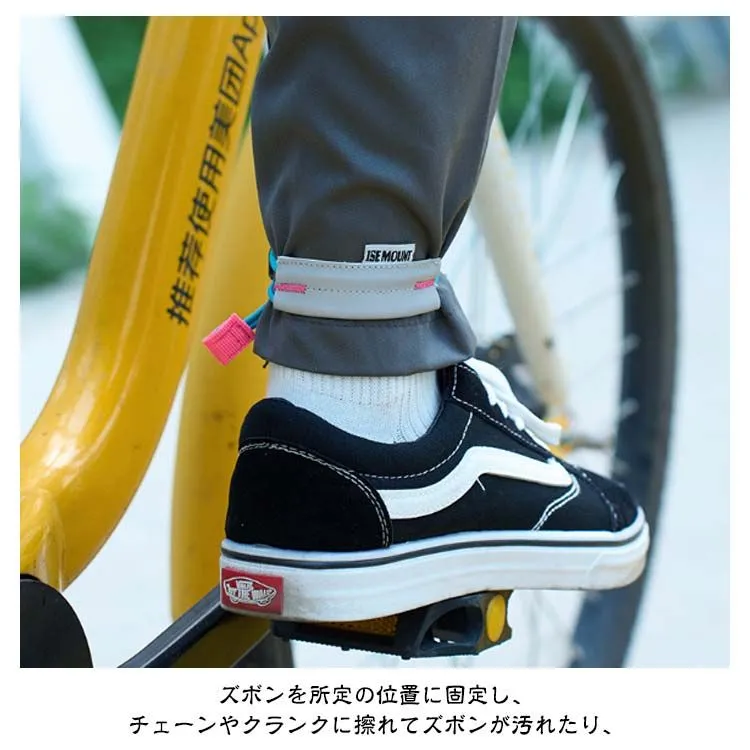 ズボンを所定の位置に固定し、チェーンやクランクに擦れてズボンが汚れたり、