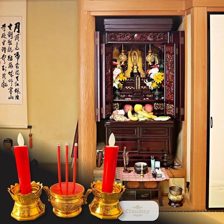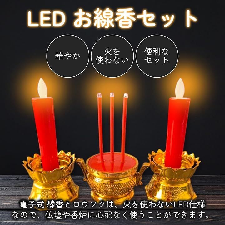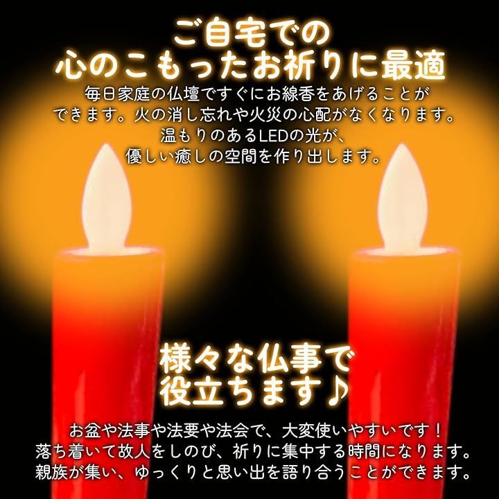 シャンディニー(Chandeny) LED ろうそく お線香 セット 電池式 仏具 火災防止 お盆 お参り 仏壇 法事 法要 法会 仏事 (レッド)