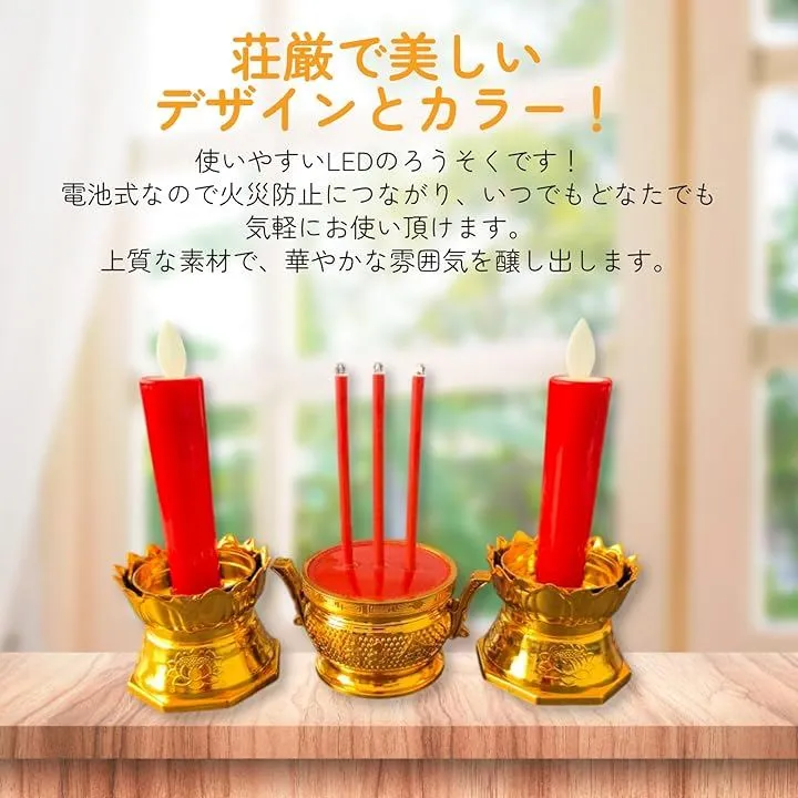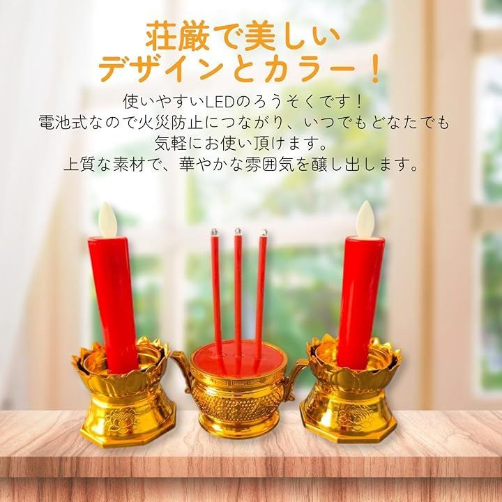 「荘厳で美しいデザインとカラー。」使いやすいLEDのろうそくです。電池式なので火災防止につながり、いつでもどなたでも気軽にお使い頂けます。