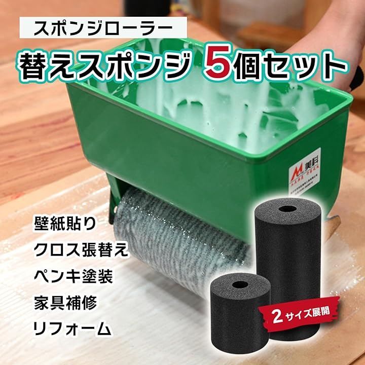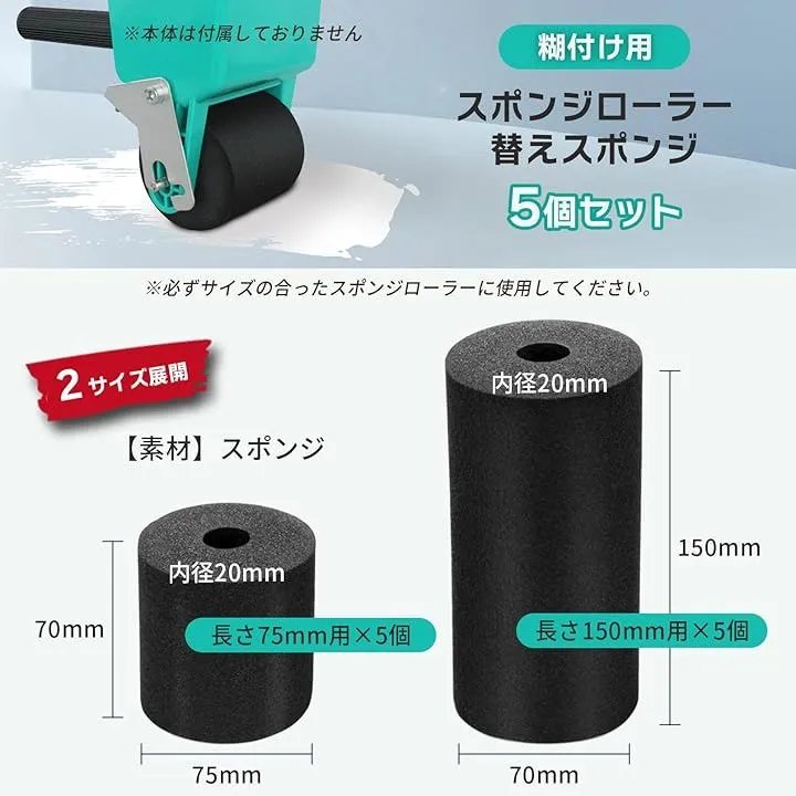 「商品内容」75mm用替えスポンジx5個、150mm用スポンジx5個「素材」スポンジ「用途」壁紙貼り、塗装作業、補修、DIY「特徴」交換式で経済的、簡単装着、使い捨て可能 *本体は付属しておりません。
