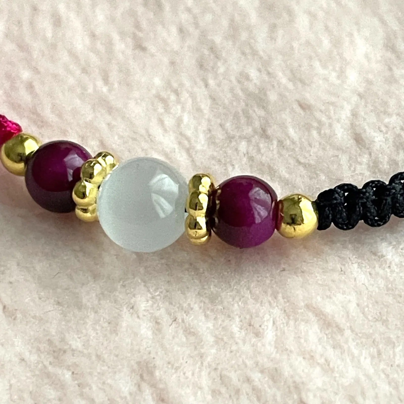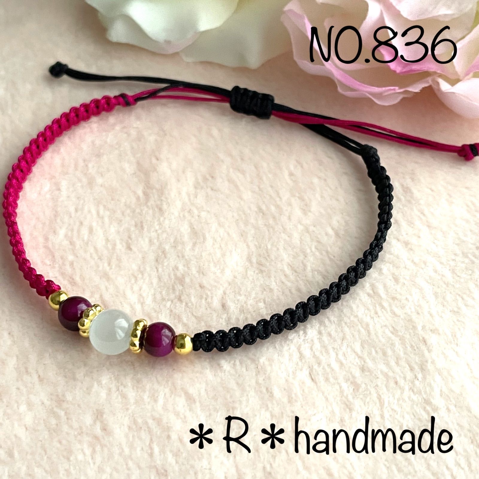 ハンドメイド ミサンガ アンクレット 黒×ローズピンク レディース メンズ