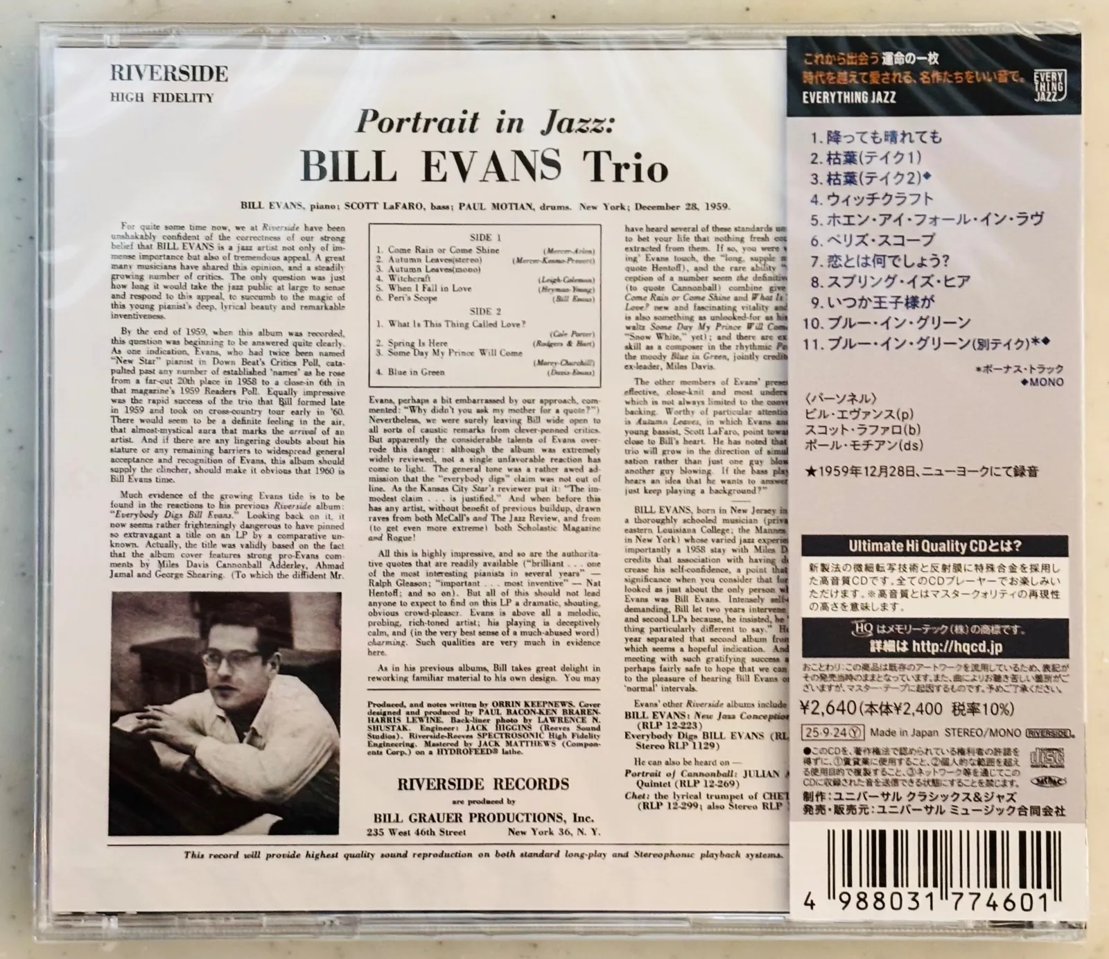 🆕7%OFFクーポン対象🆕 ジャズ100年史上、不滅のピアノ・トリオを確立した絶世の名作を最新の高音質盤で。【ポートレイト・イン・ジャズ+1|ビル・エヴァンス・トリオ】】◎UHQCD ➤9月リリース➤即日発送