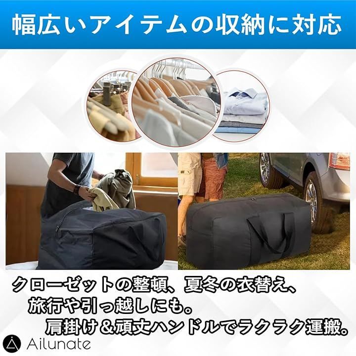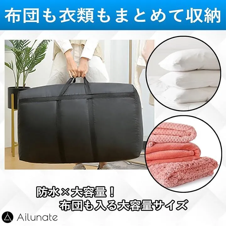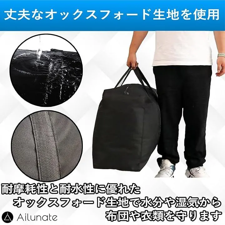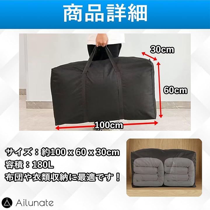 Ailunate 布団 収納袋 ふとん 特大 布団ケース 収納バッグ 大容量 持ち手付き 収納ケース 軽量 ボストンバッグ コインランドリー (ブラック, 180リットル)