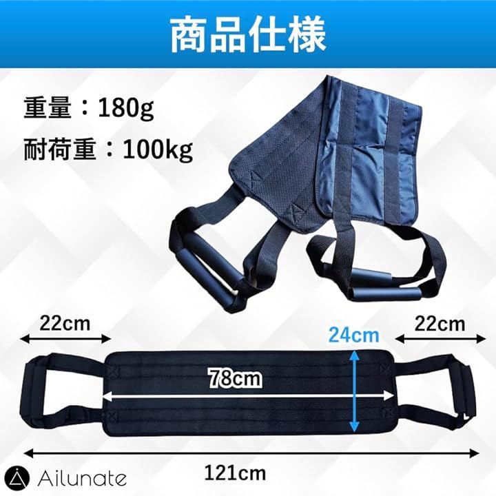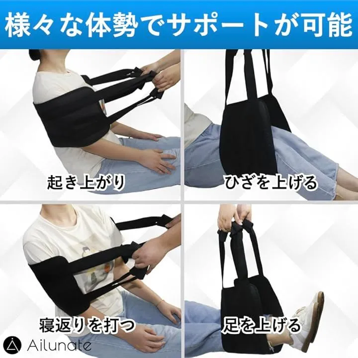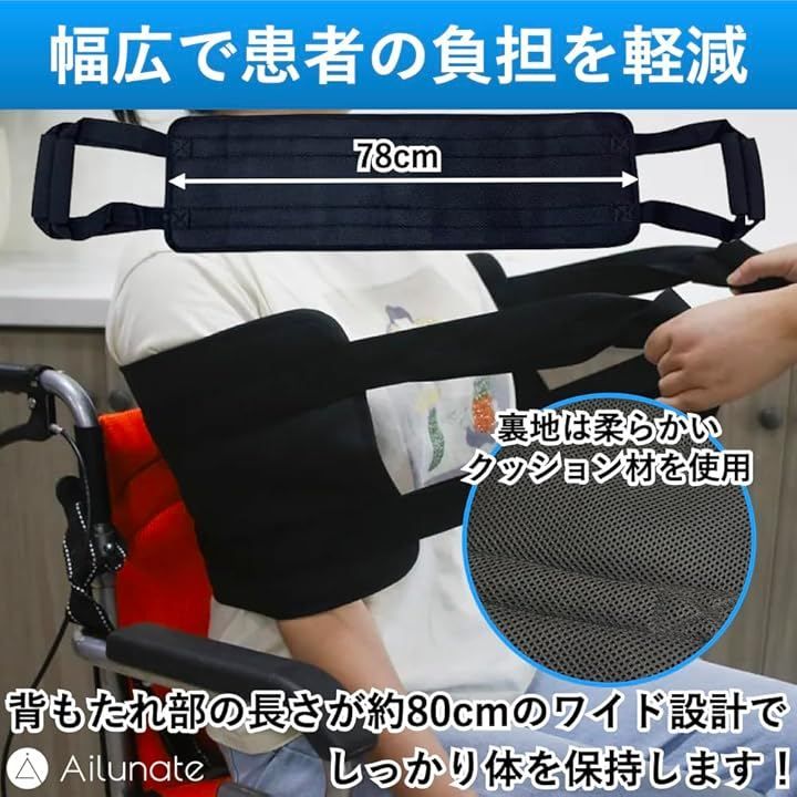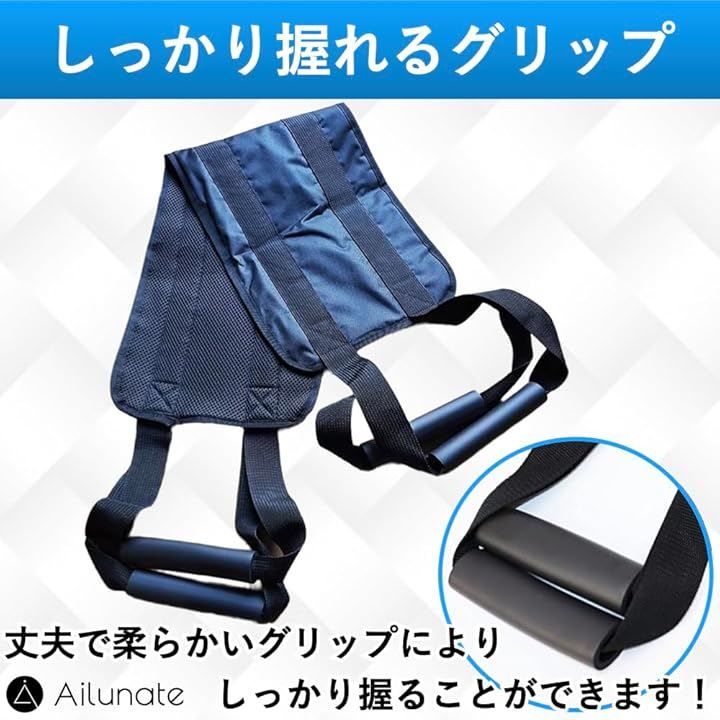 Ailunate 移乗ベルト 立ち上がり補助 介護用品 移乗シート 介護ベルト 介助ベルト 移動サポート 起き上がり補助具 ハンドル付き (ブラック)