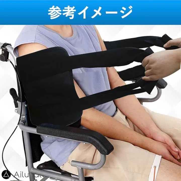 「体の起き上がりをサポート」ベッドの起き上がりや車椅子から立ち上がる際に移乗ベルトで体を包んで体を起こせます。