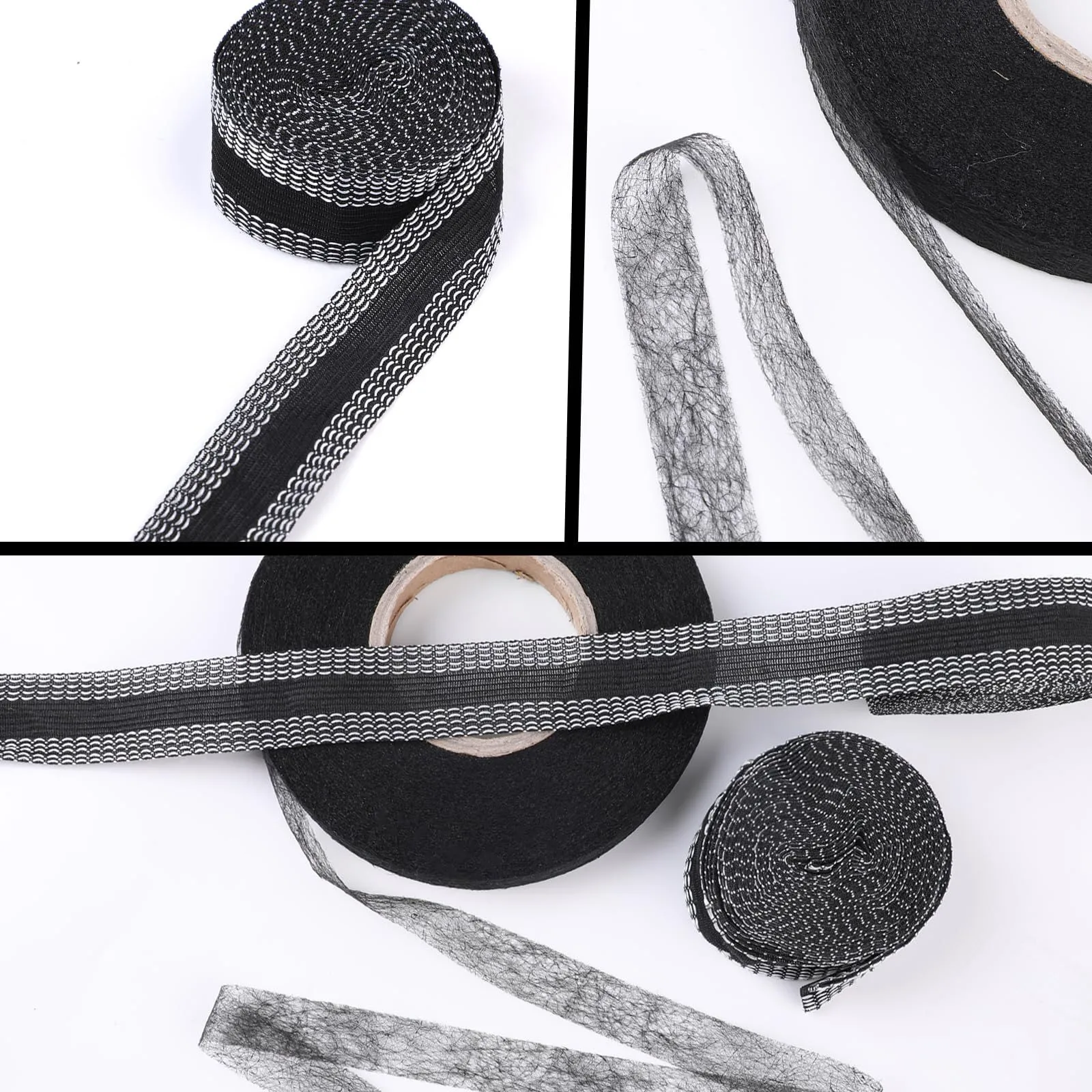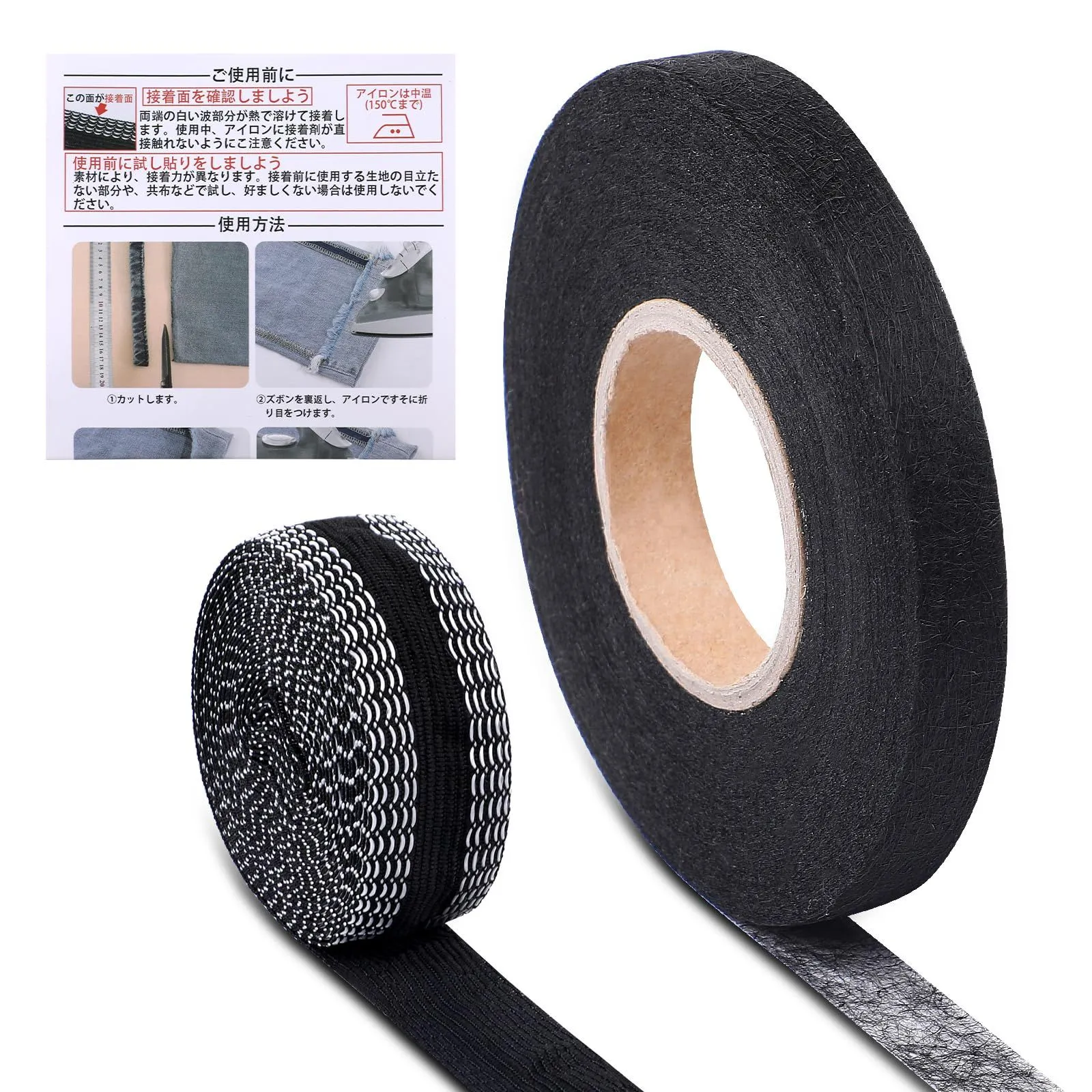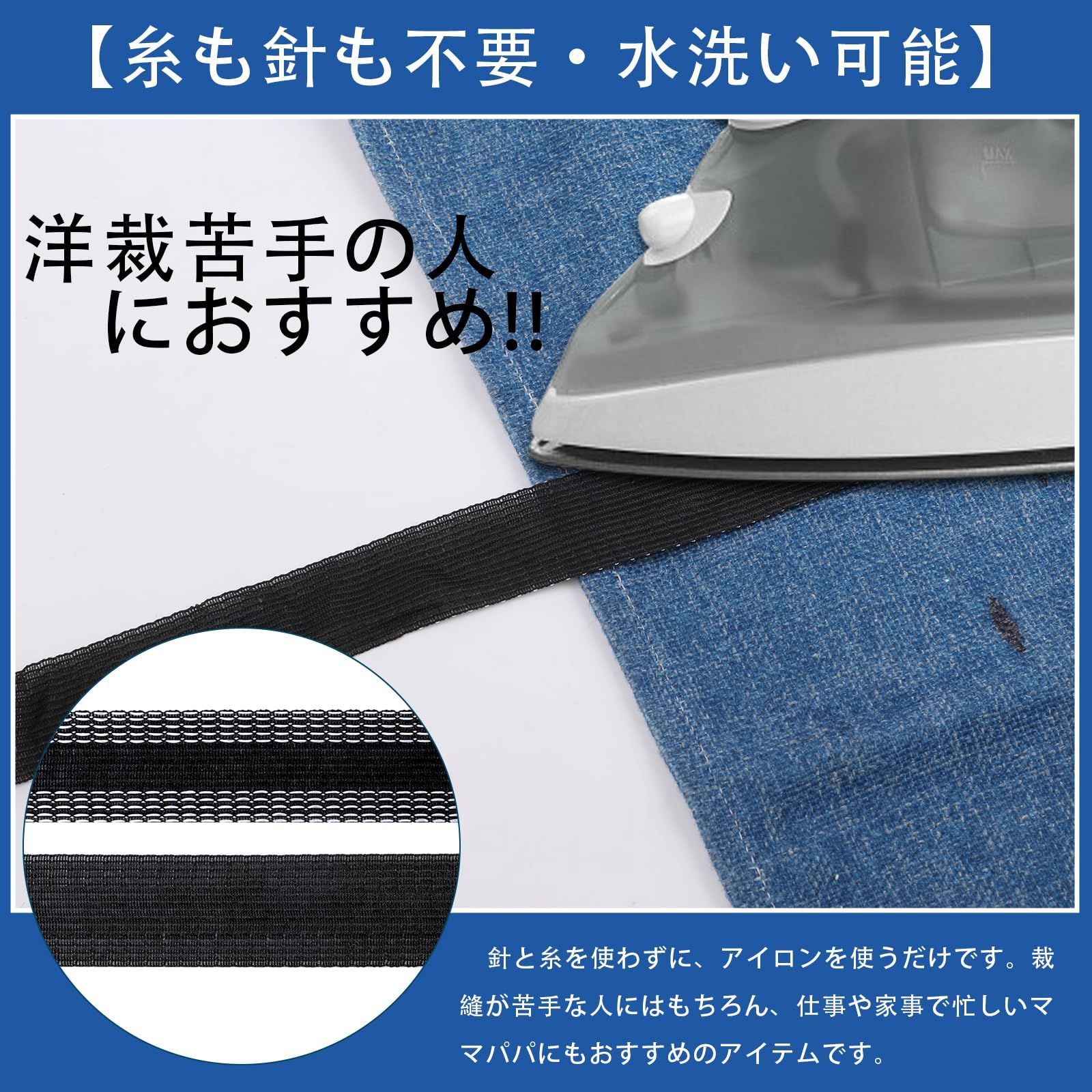 FINGOOO 裾上げテープ アイロン 強力・接着芯テープ付き・説明書付き・洗濯可能 すそあげテープ ストレッチ 裾明けテープ 布用 片面タイプ ズボン スカート (ブラック)