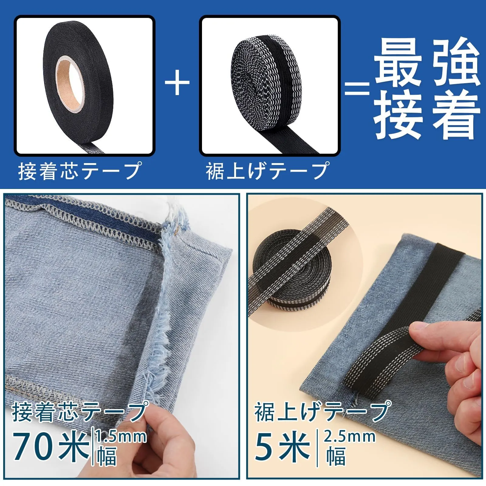セット内容:5M×2.5CM裾上げテープ×1巻+70M×1.5CM接着芯テープ×1巻