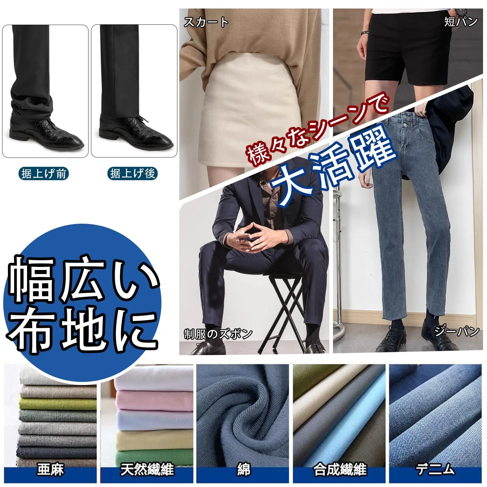 接着芯テープ付き:裾上げテープだけでは強度が足りないので、当店は接着芯テープをプラスしました。さらなる強度UPを実現しております。運動や洗濯をしても簡単にテープが取れてしまうことはありません。(接着芯テープと裾上げテープを使う前に水で濡らすと粘性が強くなります。)