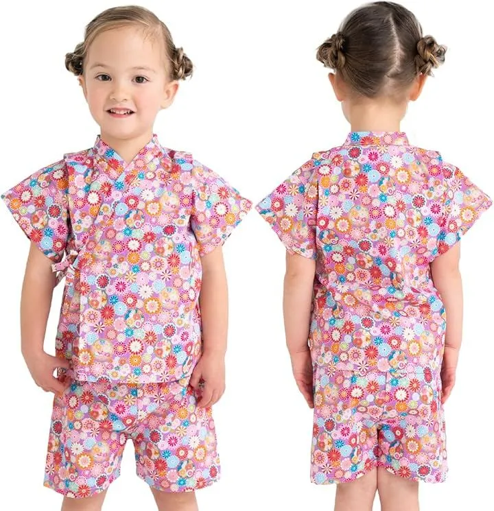 ZAIDEA 甚平 甚兵衛 ベビー 女の子 キッズ 日本製 じんべい 上下 子供 パジャマ 部屋着 夏 祭り 綿 涼しい 浴衣 (和花柄パープル, 100)