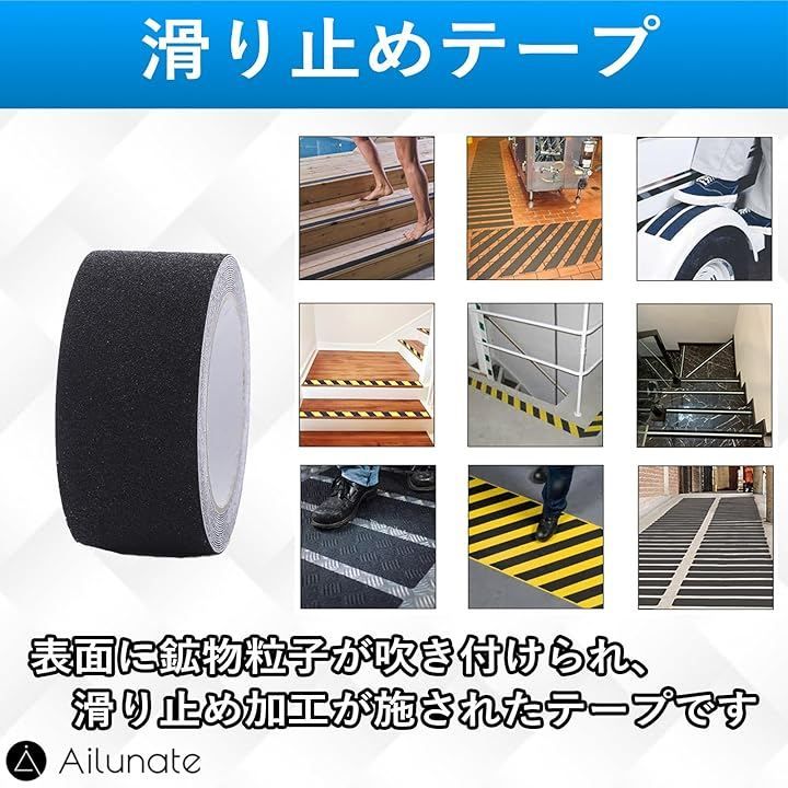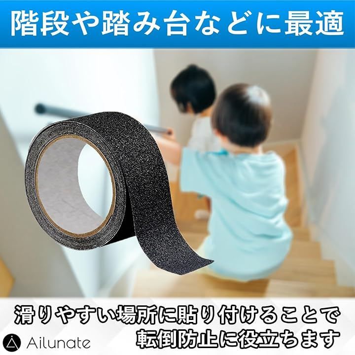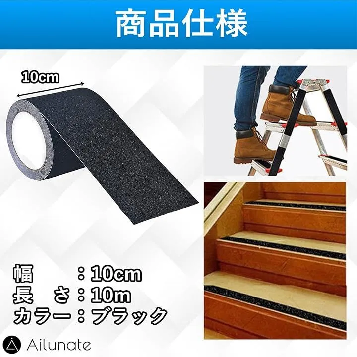 Ailunate 滑り止めテープ 屋外 すべり止めテープ 防水 階段 転倒防止 安全対策 屋内 すべりどめ ノンスリップ 床 (黒, 幅10cm、長さ10m)