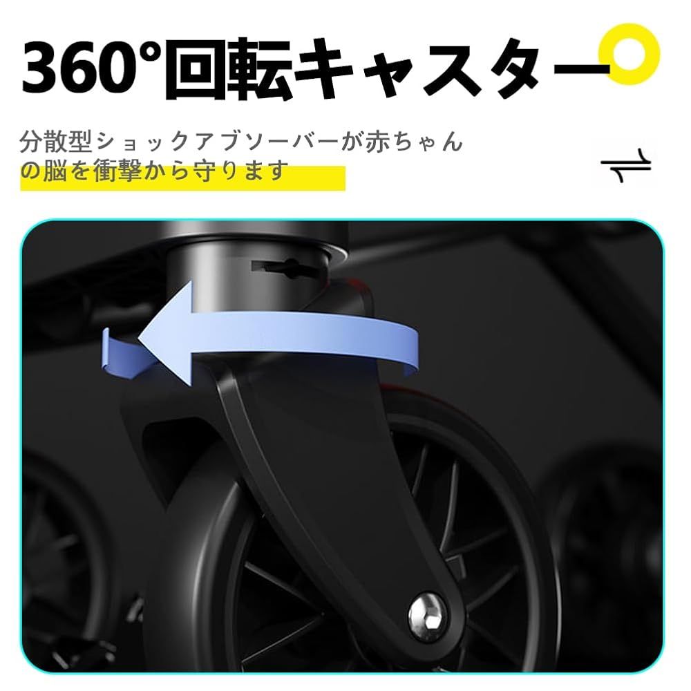 【機能】:アップグレード版の 360 度回転シートとリクライニング機能を備え、厚みのあるシートマットを採用して快適な乗り心地を実現。4 輪すべてにサスペンションが付いて振動を低減。 4.