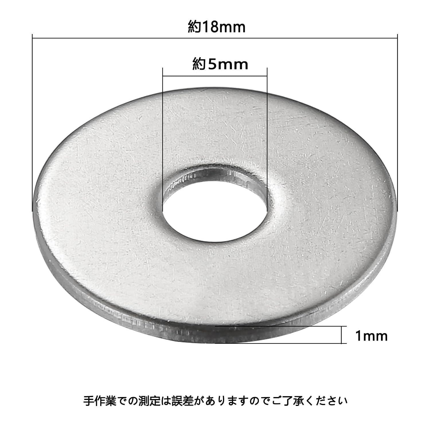 ステンレス 大ワッシャー M5用 【外径18mm, 厚み 1mm】